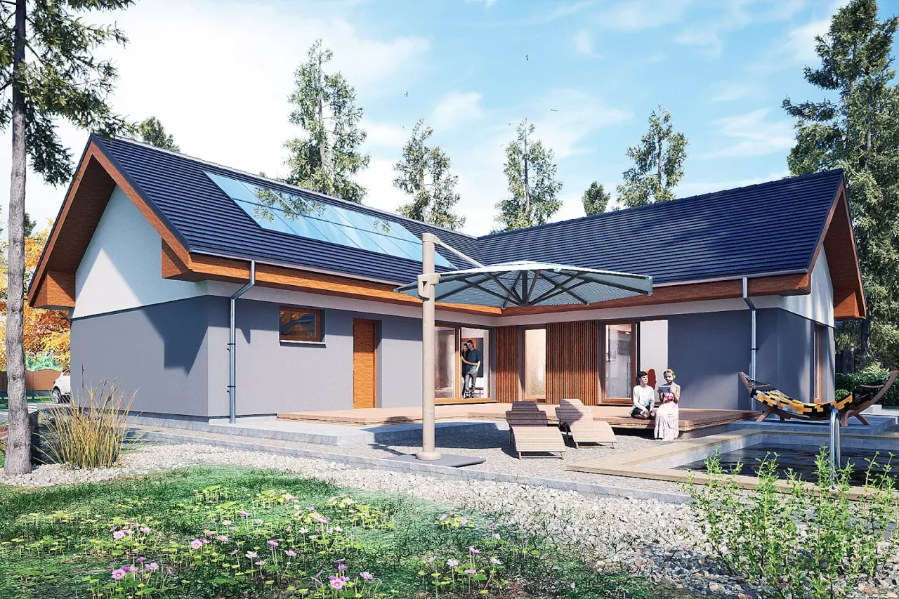 Kupując projekt w technologii murowanej powinieneś budować dom murowany. Zupełna zmiana technologii na szkieletową wymaga przeprojektowania całego budynku ( zmieniają się obciążenia, fundamenty, konstrukcja dachu). Wydamy zgodę na takie przeprojektowanie jednak wiążę się to z dużymi kosztami. Istnieją firmy wykonawcze, które podejmują się zmiany technologii budowy bezpłatnie przy skorzystaniu z ich usług wykonawczych. Zdarza się, że pracownia architektoniczna przygotowuje warianty konkretnego projektu przewidując także inne technologie. Prosimy o sprawdzenie czy istnieje poszukiwana wersja projektu, w zakładce - warianty projektu.