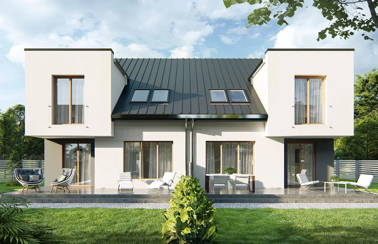 Wypełnij formularz i otrzymaj rysunki w pdf z dokładnymi wymiarami budynku i pomieszczeń (długość, szerokość, wysokość) dla projektu Merida - bliźniak