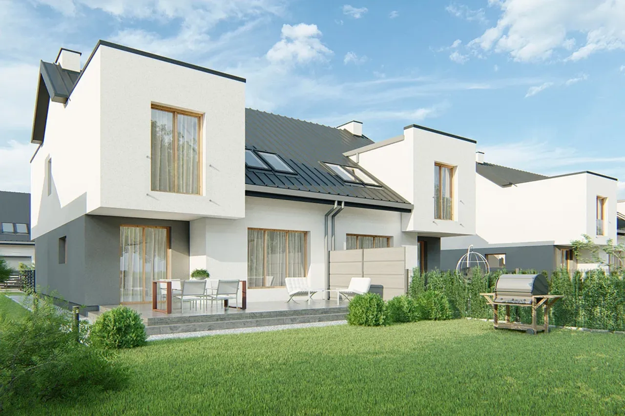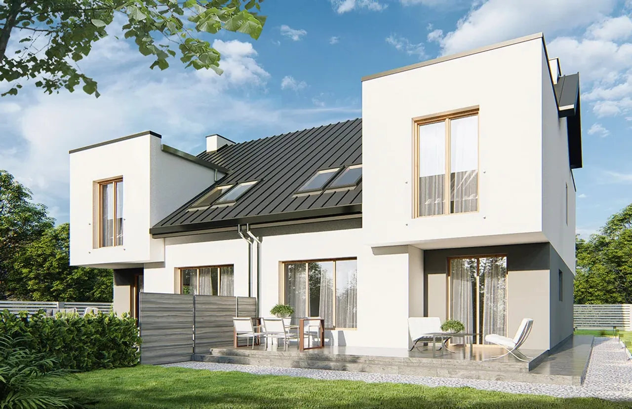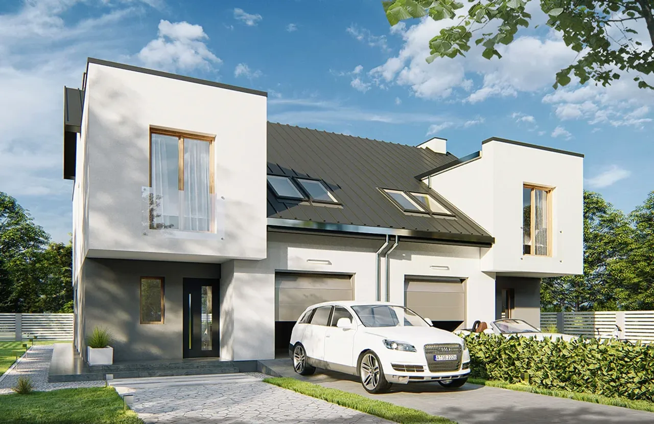 Projekt domu Merida - segment lewy to prawdziwa oaza dla poszukujących harmonii i nowoczesności w jednym. Krystalicznie czyste linie elewacji w połączeniu z funkcjonalnym rozmieszczeniem przestrzeni, kreują miejsce zarówno intymne, jak i idealne do zorganizowania większych rodzinnych spotkań. Zarówno strefa dzienna, jak i prywatna zostały zaprojektowane z myślą o maksymalnym wykorzystaniu naturalnego światła, co sprawia, że dom jest nie tylko piękny, ale i ekologiczny. To zdecydowanie projekt, który pomyślał o zapewnieniu komfortu na najwyższym poziomie, jednocześnie dbając o subtelne połączenie z naturą. Idealny wybór dla tych, którzy cenią sobie estetykę i funkcjonalność.