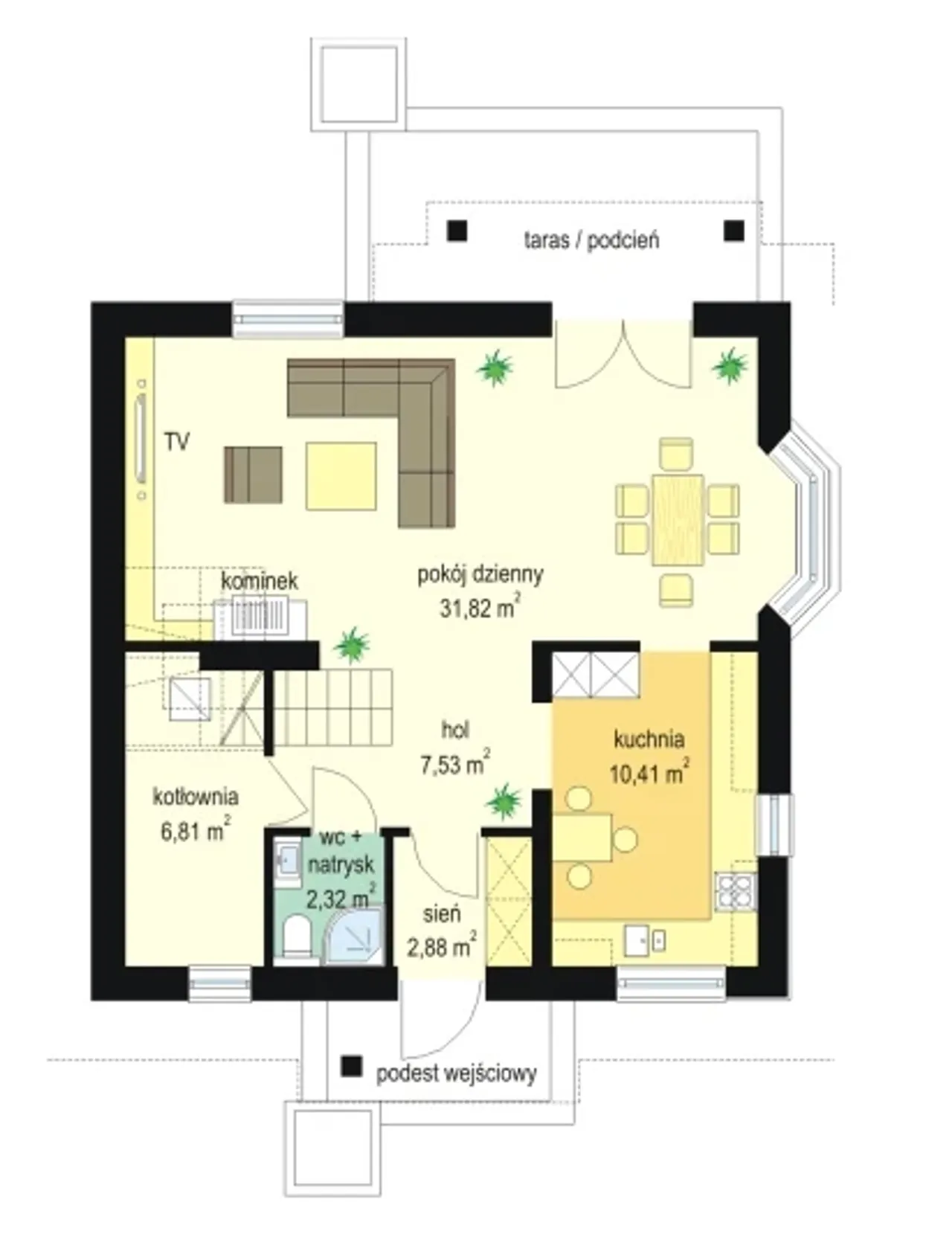 Kupując projekt w technologii murowanej powinieneś budować dom murowany. Zupełna zmiana technologii na szkieletową wymaga przeprojektowania całego budynku ( zmieniają się obciążenia, fundamenty, konstrukcja dachu). Wydamy zgodę na takie przeprojektowanie jednak wiążę się to z dużymi kosztami. Istnieją firmy wykonawcze, które podejmują się zmiany technologii budowy bezpłatnie przy skorzystaniu z ich usług wykonawczych. Zdarza się, że pracownia architektoniczna przygotowuje warianty konkretnego projektu przewidując także inne technologie. Prosimy o sprawdzenie czy istnieje poszukiwana wersja projektu, w zakładce - warianty projektu.