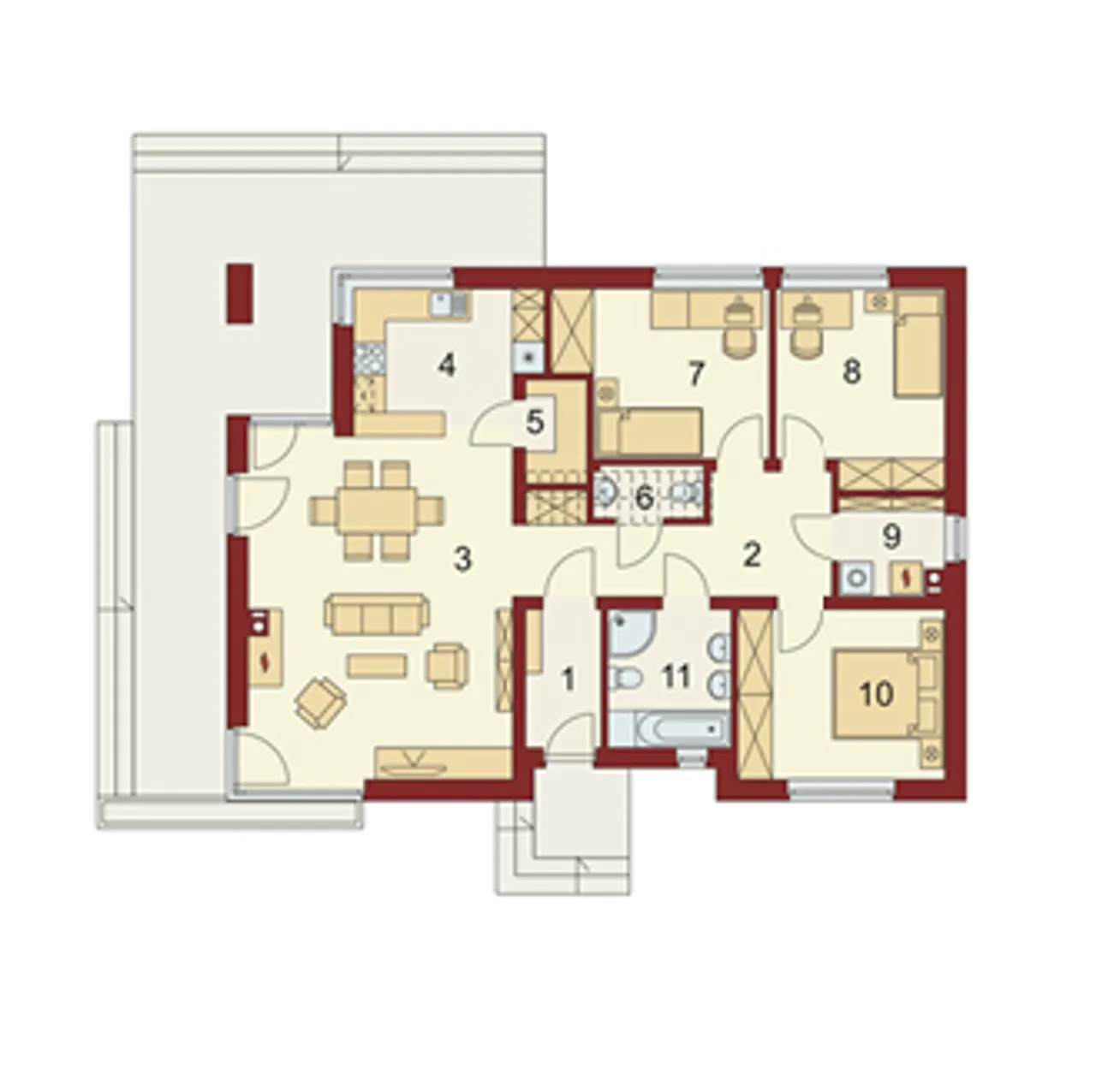 Przeglądam projekty domów i natknąłem się na projekt Midas 3 autora architekta Marcina Michalskiego i wydaje mi się, że ten projekt jest dobrze zrobiony tylko mam wrażenie, że ten ubytek w salonie i kuchni jest niepotrzebny. Zastanawiam się czy nie lepiej byłoby zrównać go z całą bryłą budynku i zrobić narożne drzwi wyjściowe na taras a szafki i meble kuchenne wszystkie zmieścić na jednej ścianie. Poza tym projekt jest ok, ładnie wygląda i wydaje się być całkiem funkcjonalny jak dla mojej rodziny.