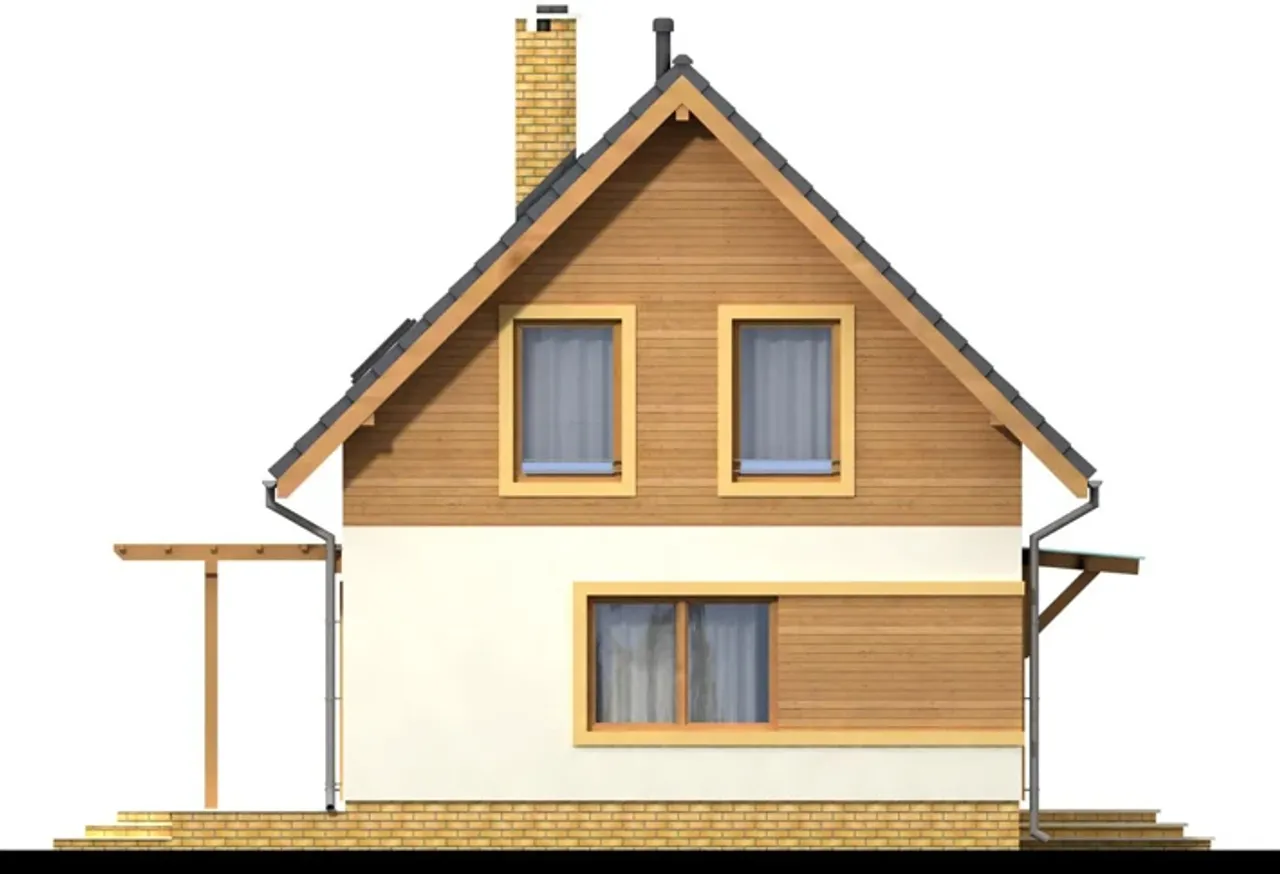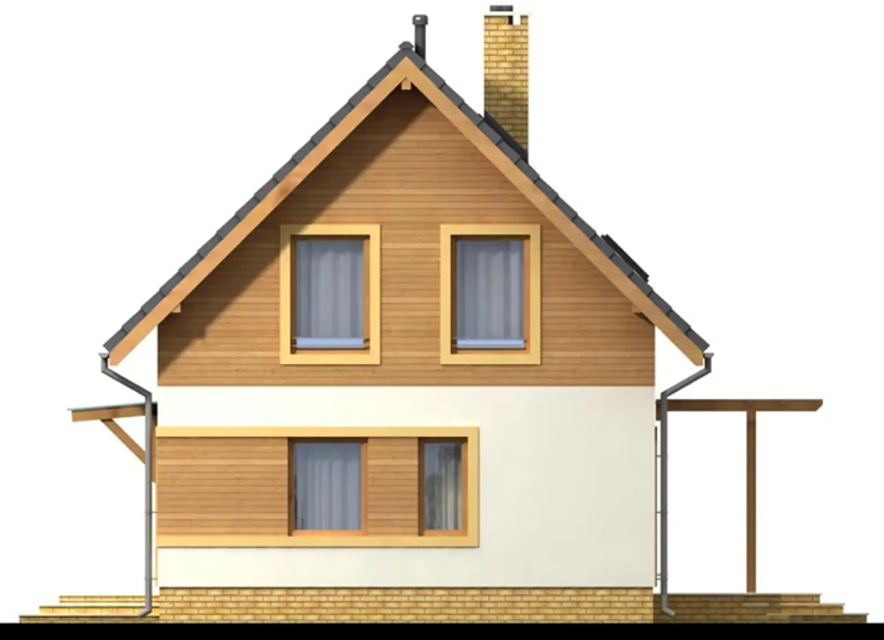 Konstrukcja domu opiera się na trwałych fundamentach żelbetowych. Nośne i działowe ściany wykonano z pustaków ceramicznych, co wzmacnia izolację i akustykę. Strop gęstożebrowy oraz drewniana więźba dachowa tworzą stabilną konstrukcję. Całość wieńczy dachówka ceramiczna - wybór na długie lata użytkowania. Ogrzewanie gazowe lub na paliwo stałe oferuje elastyczność i pozwala dopasować system do indywidualnych potrzeb.