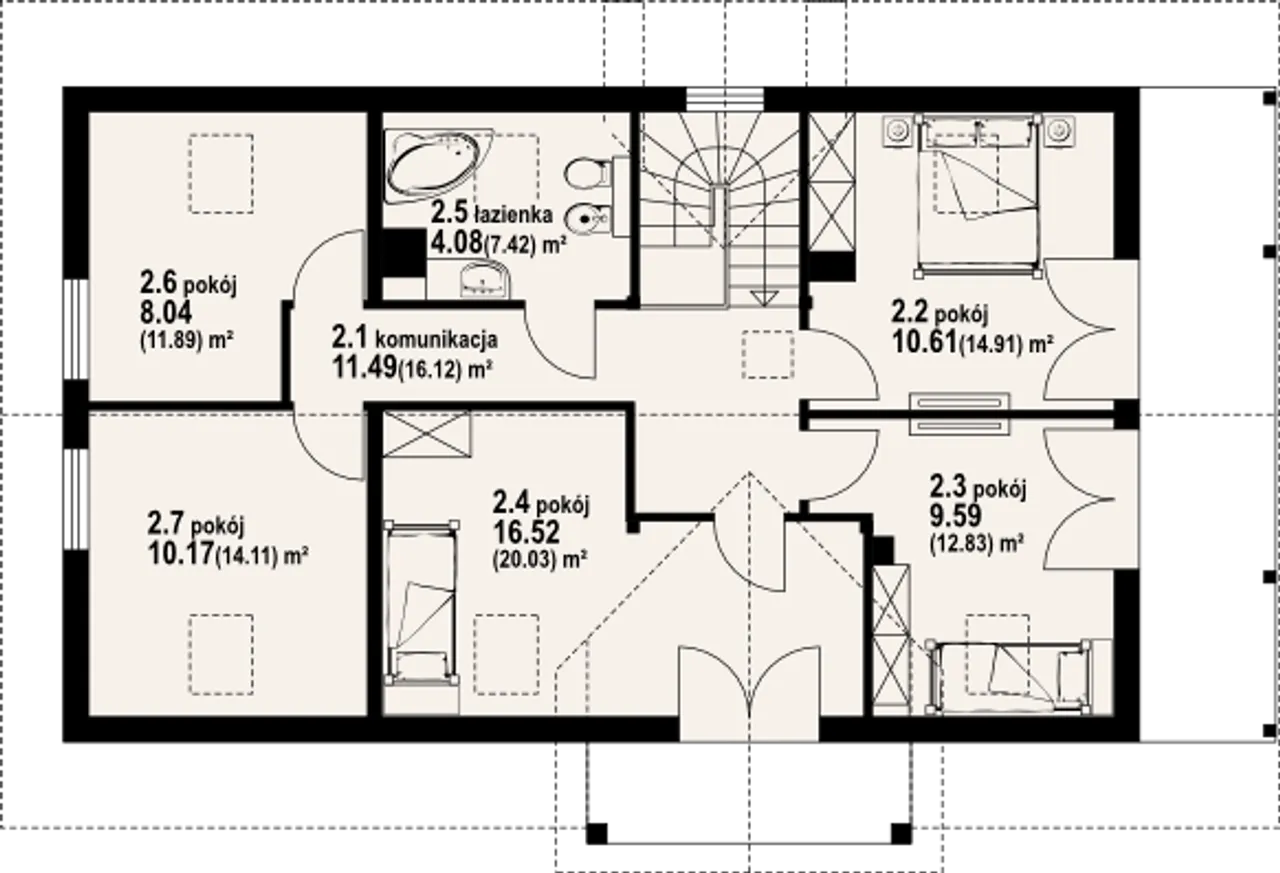 2. Pokój | 10,61 (14,91) m² |