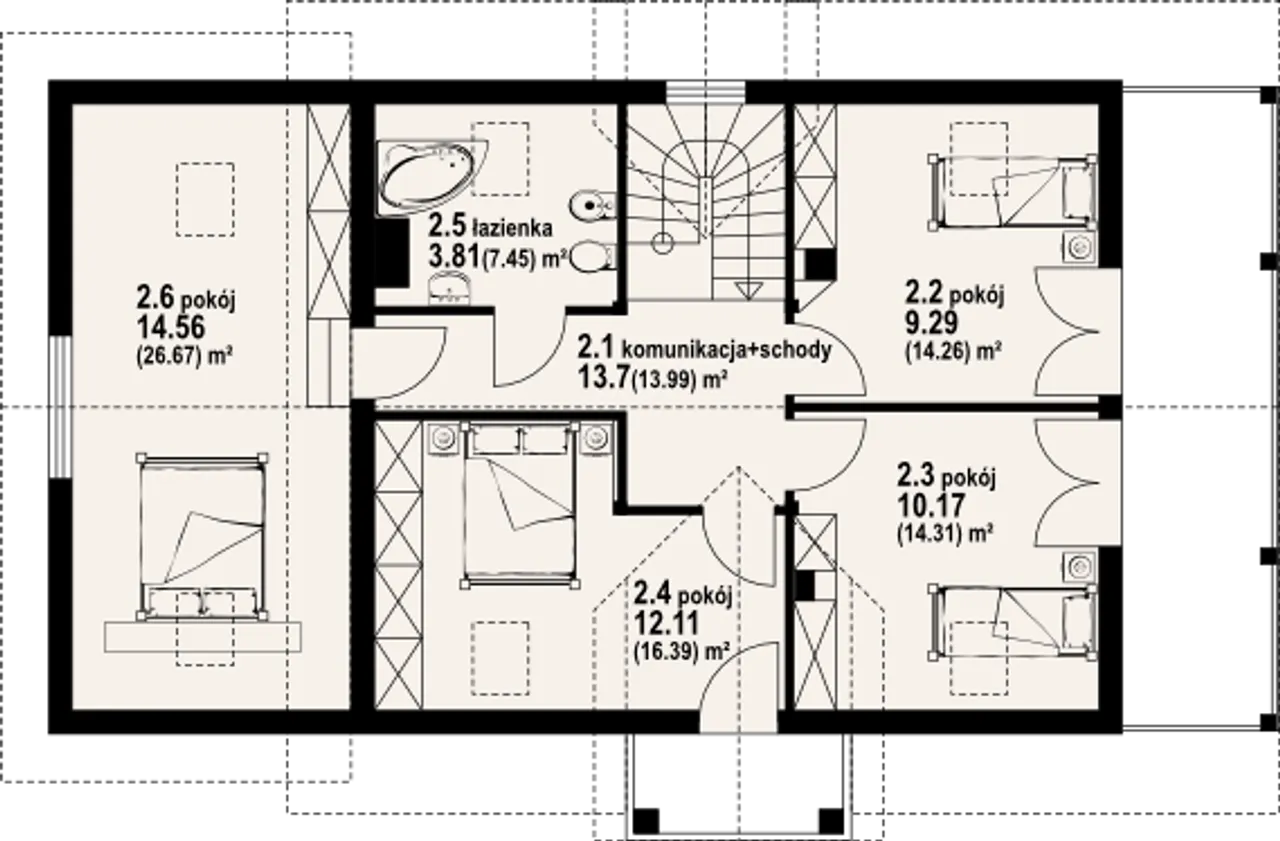6. Pokój | 14,56 (26,67) m² |