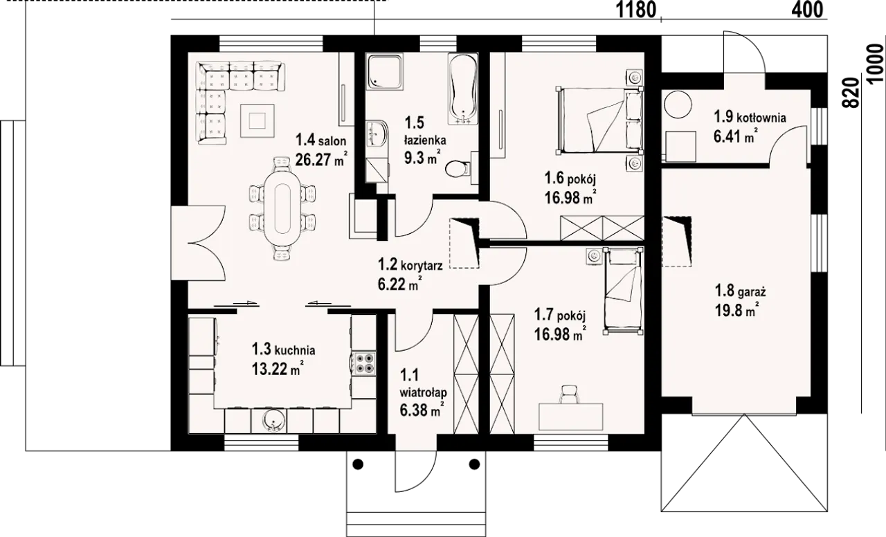 Wypełnij formularz i otrzymaj rysunki w pdf z dokładnymi wymiarami budynku i pomieszczeń (długość, szerokość, wysokość) dla projektu Miłków 11g