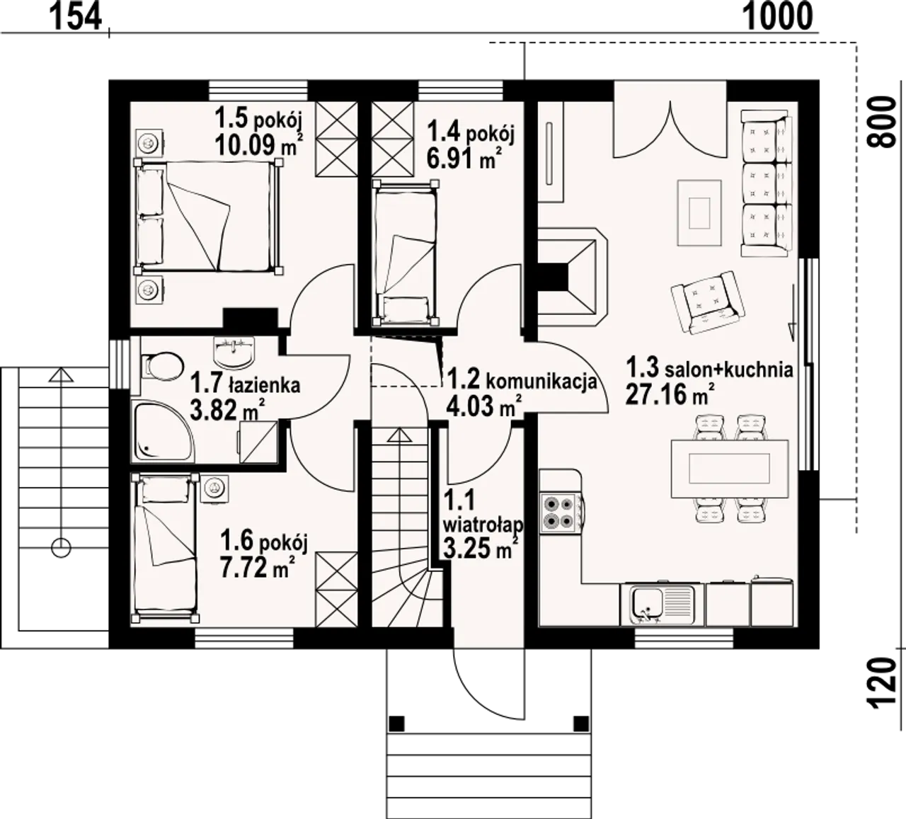 - opisu architektonicznego zawierającego m.in. opis przyjętych rozwiązań, zestawienia powierzchni (użytkowej, zabudowy, netto), kubatury oraz powierzchni poszczególnych pomieszczeń