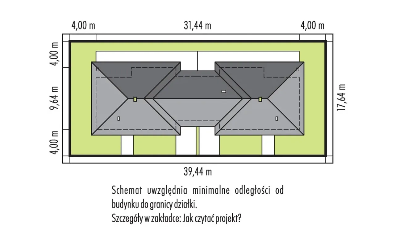 | Szerokość budynku 31.44 m |