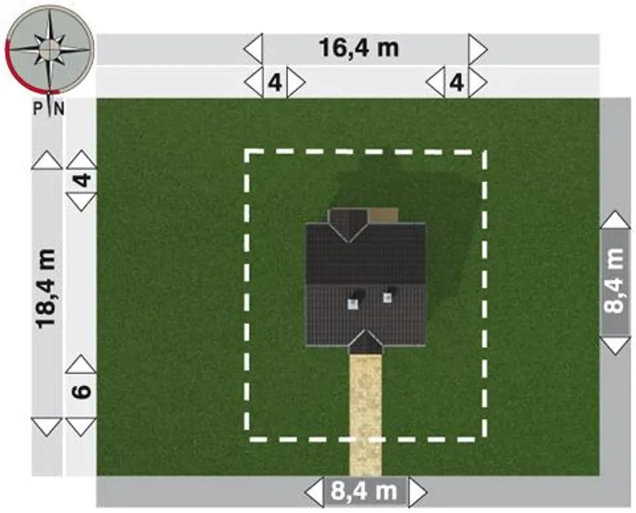 - rzut dachu - ukazuje jego kształt, wymiary, kąt nachylenia połaci, rozmieszczenie okien połaciowych, lukarn, świetlików i rur spustowych, pokazuje rozmieszczenie kominów i informuje o sposobie odwodnienia: rozmieszczeniu i rozmiarach rynien