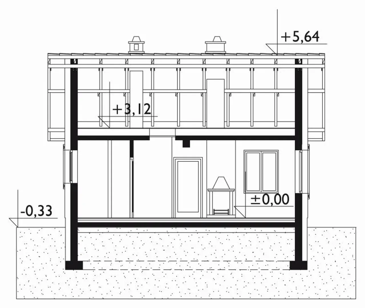- przekroje - pokazują wszystkie elementy budynku po przecięciu go wzdłuż lub w poprzek od dachu do fundamentów tj. warstwy podłogi, stropów i dachu