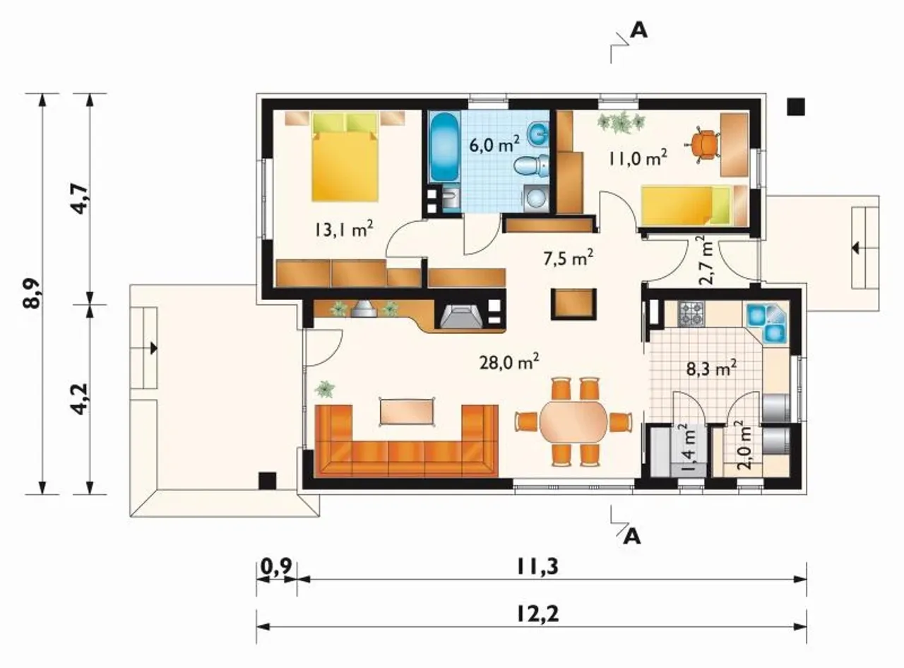 - elewacje - pokazują dokładny wygląd domu od frontu, z tyłu i z boków
