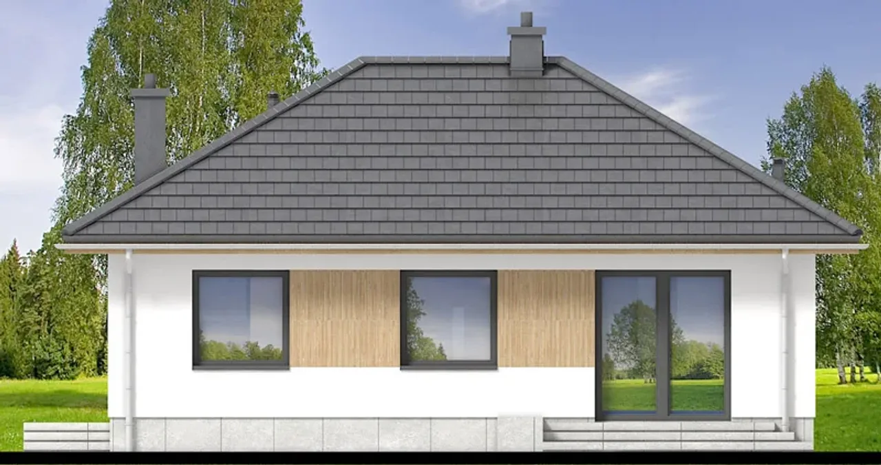 Mirabelka 2 4s to projekt domu jednorodzinnego, który wpisuje się w modernistyczne trendy architektoniczne. Prosta, klarowna bryła o kalenicy równoległej do drogi ułatwia lokalizację budynku na większości działek. Drewniana konstrukcja dachu, pokryta dachówką betonową lub ceramiczną, wyróżnia się nie tylko walorami estetycznymi, ale także długowiecznością.