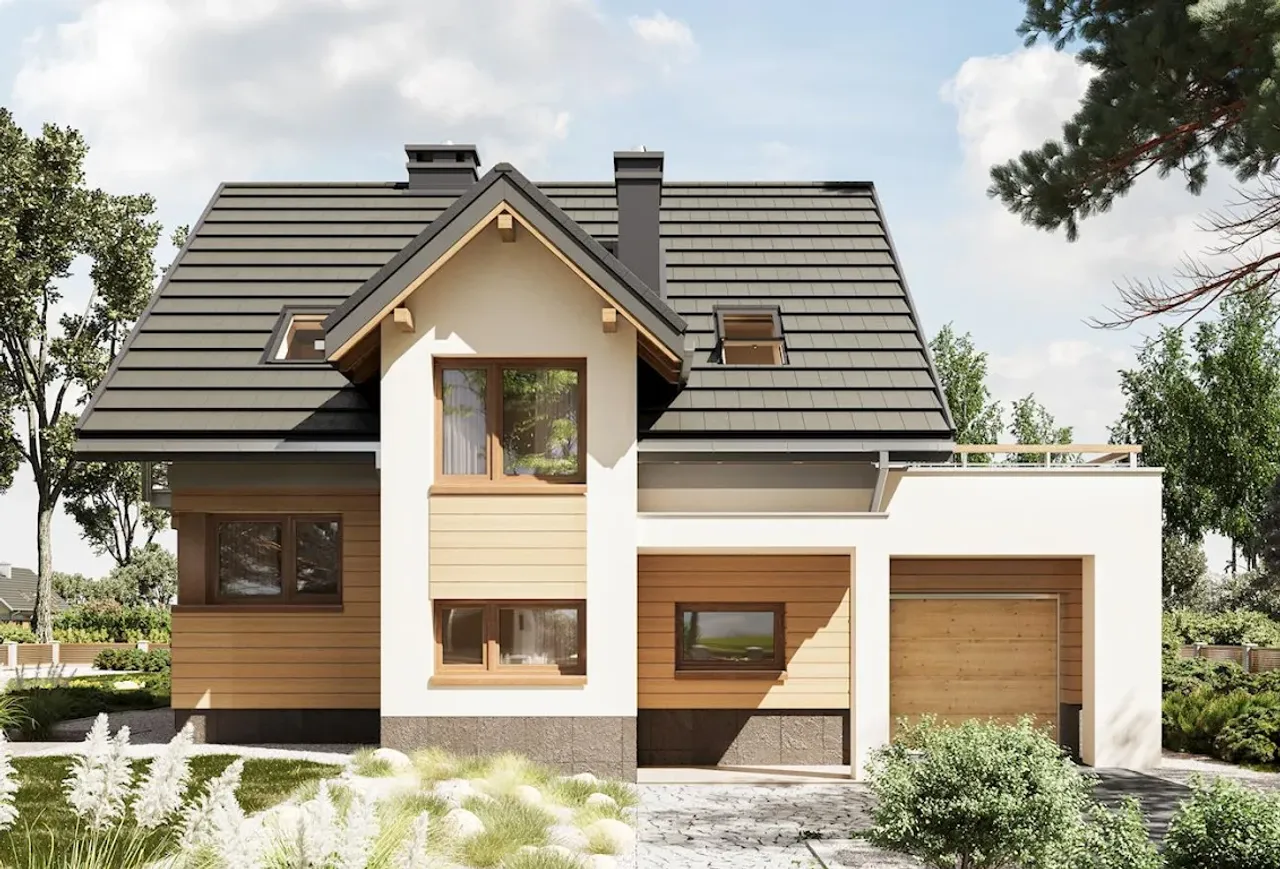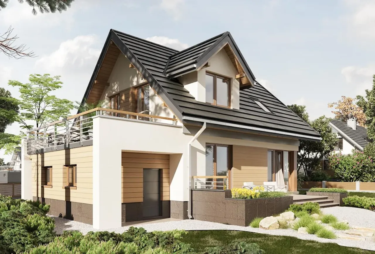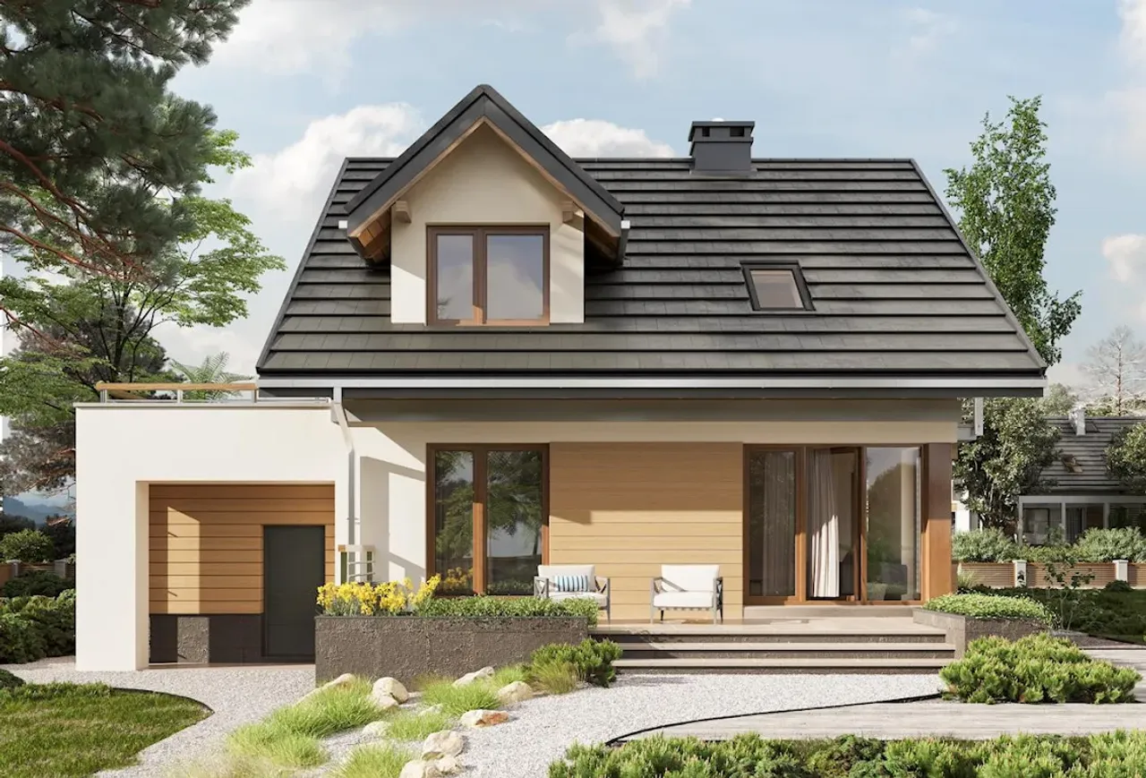 parterowy+poddasze Projekt domu "Mirona Neo" Archeton przyciąga swoim nowoczesnym i funkcjonalnym wyglądem. Wyróżnia go przestronność i przemyślana organizacja przestrzeni, która idealnie wpasuje się w potrzeby zarówno małej, jak i większej rodziny. Dopełnieniem jest piękna, minimalistyczna elewacja, dodająca budynkowi elegancji i współczesnego charakteru.