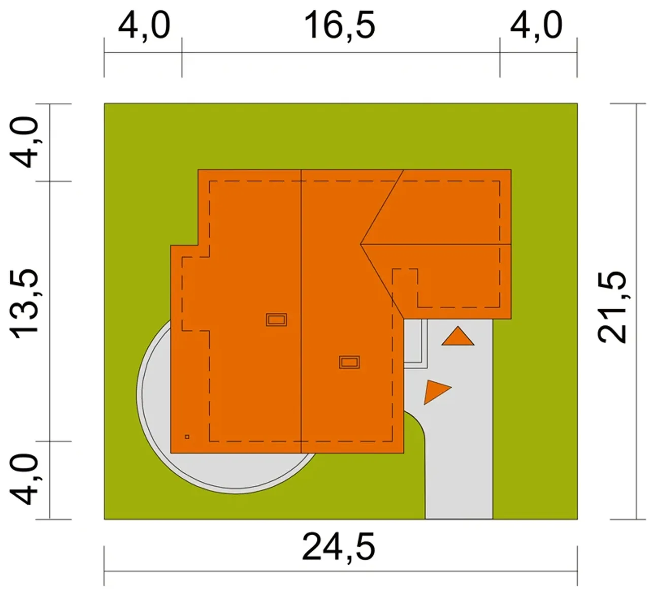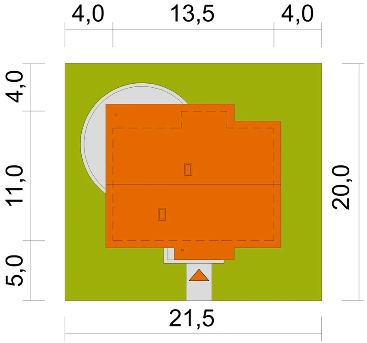Wypełnij formularz i otrzymaj rysunki w pdf z dokładnymi wymiarami budynku i pomieszczeń (długość, szerokość, wysokość) dla projektu Mniszek bez garażu