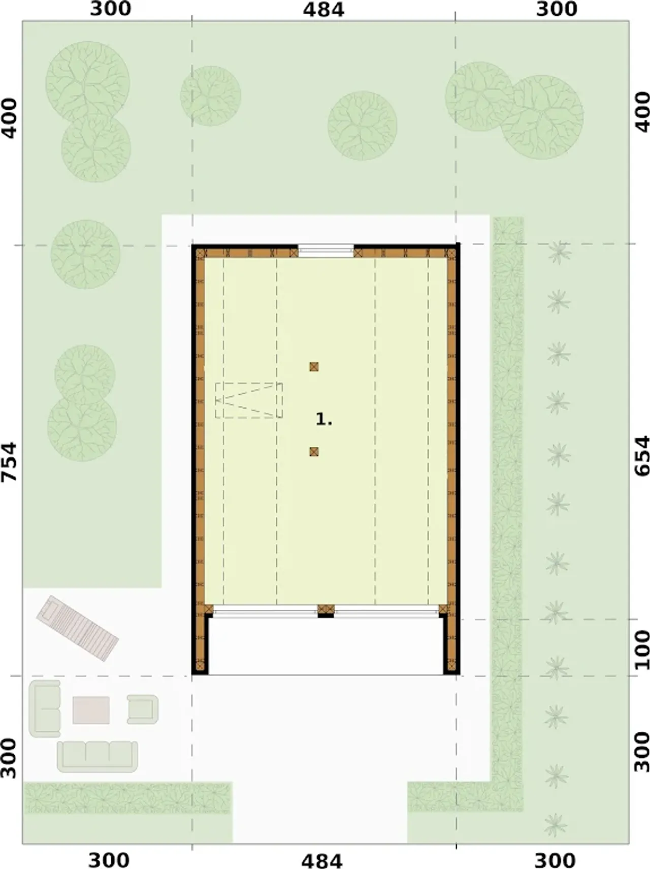Wypełnij formularz i otrzymaj rysunki w pdf z dokładnymi wymiarami budynku i pomieszczeń (długość, szerokość, wysokość) dla projektu Moca 2 A OC szkielet drewniany dom letniskowy na zgłoszenie do 35m2