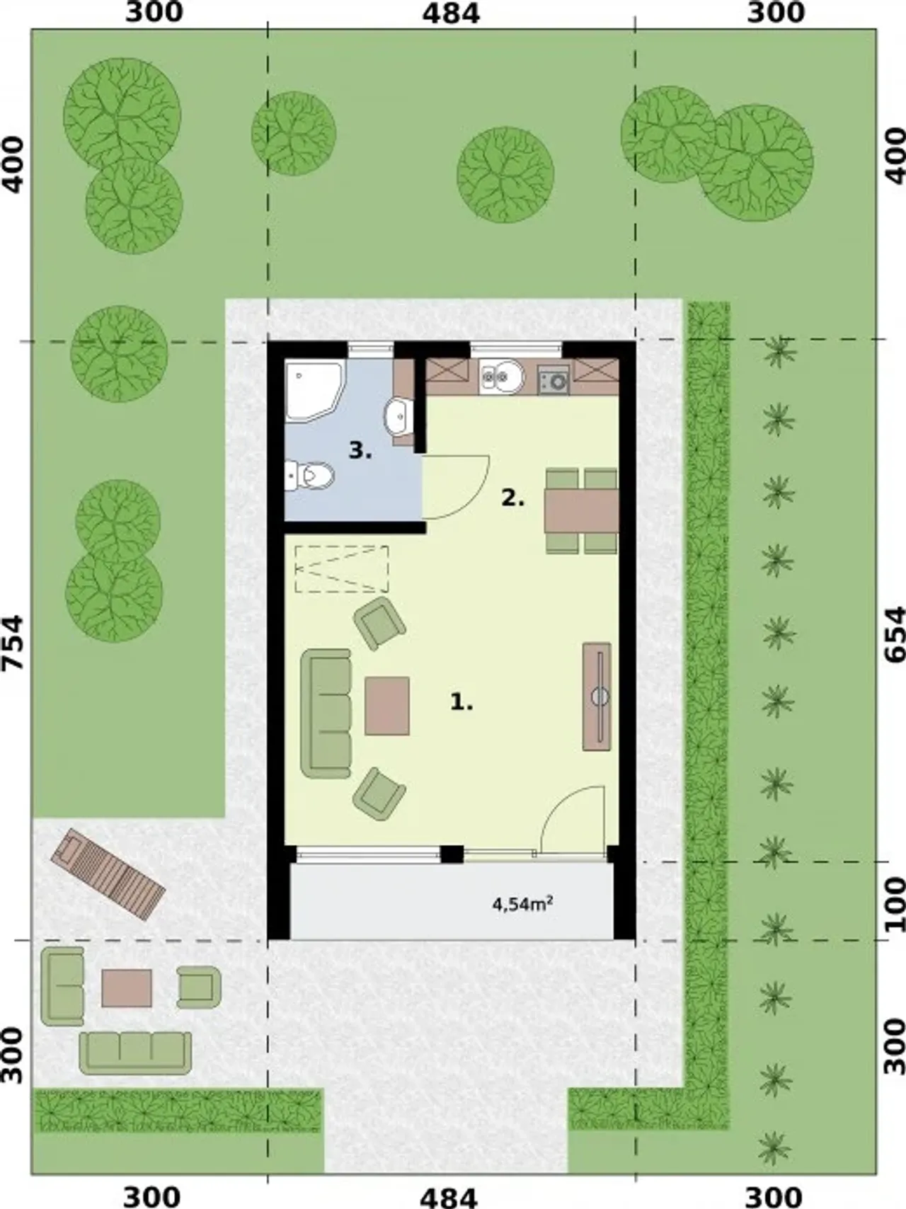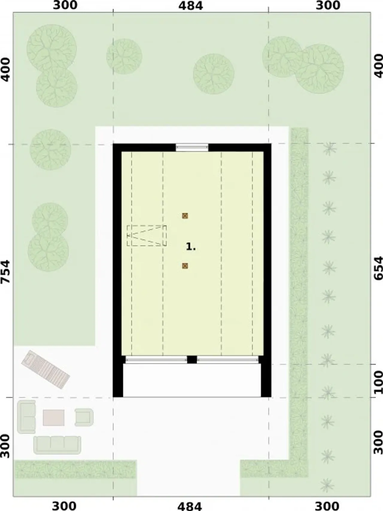 Wypełnij formularz i otrzymaj rysunki w pdf z dokładnymi wymiarami budynku i pomieszczeń (długość, szerokość, wysokość) dla projektu Moca A dom letniskowy na zgłoszenie do 35m2