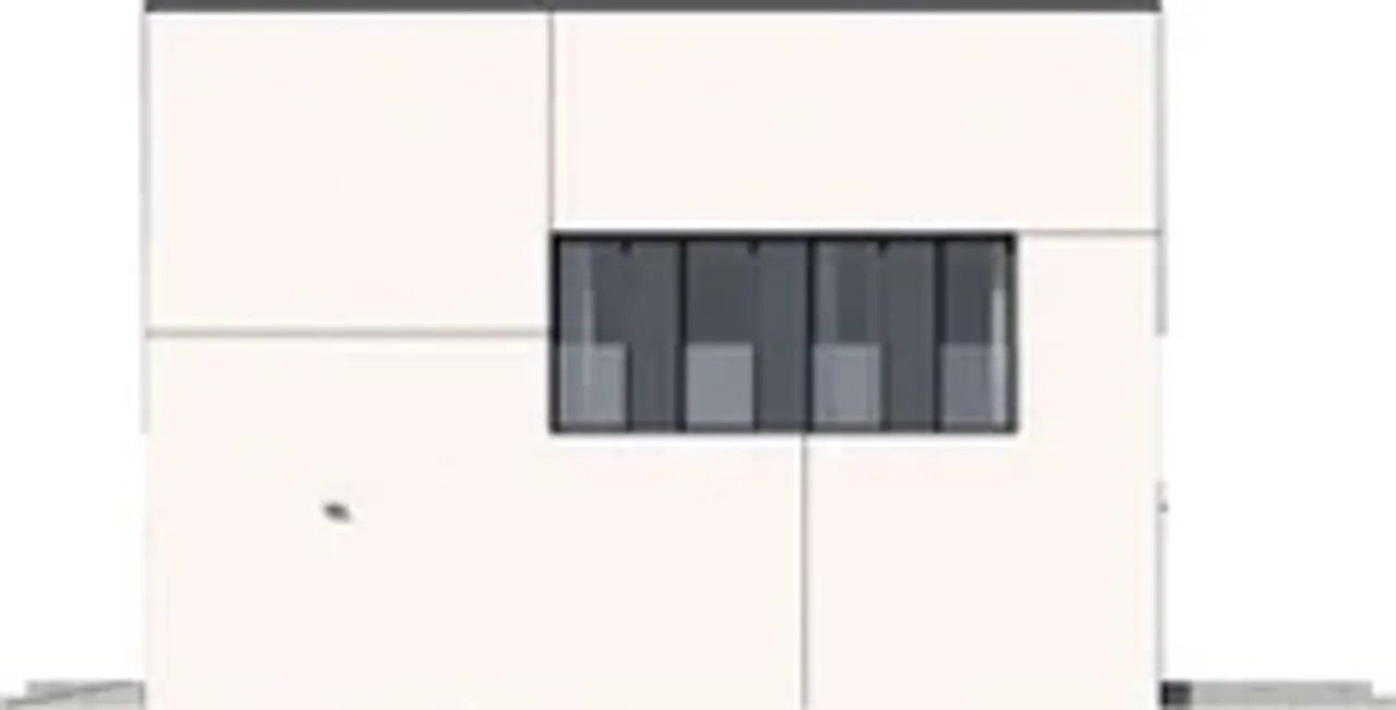 Projekt domu moderno przedstawia nowoczesny budynek jednorodzinny z pulpitowym jednospadowym dachem. Ten wolnostojący dom, charakteryzujący się prostokątnym rzutem, jest atrakcyjny cenowo i ma ekonomiczną konstrukcję. Zewnętrzne wykończenie wykonane jest z tynku strukturalnego na siatce, z charakterystycznymi liniami przeżłobień wtopionymi w fasadę.