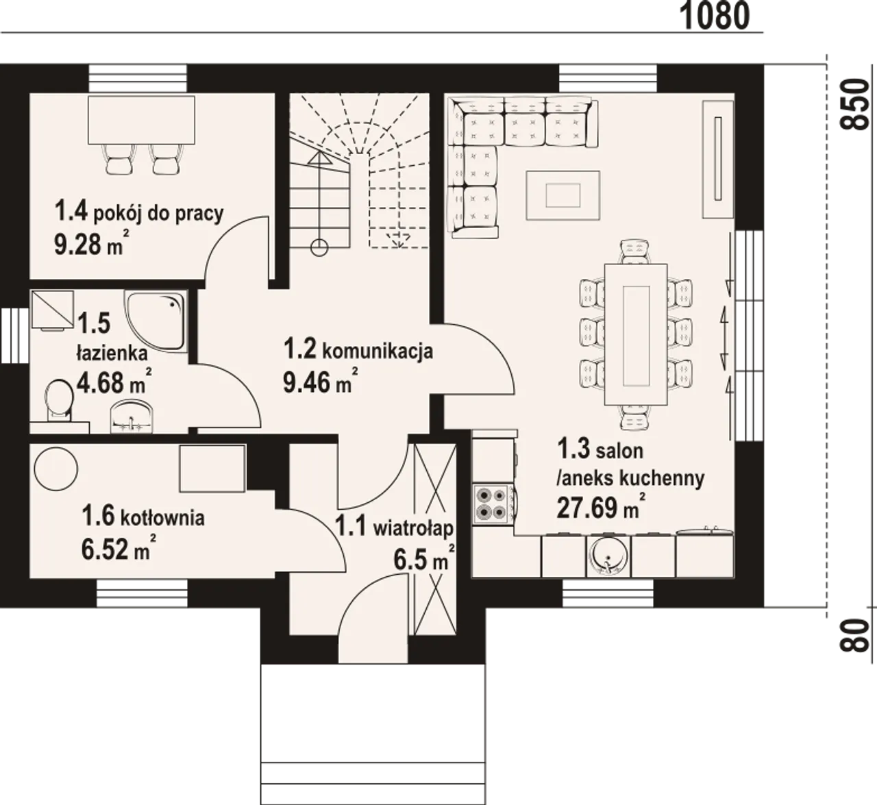 - opisu architektonicznego zawierającego m.in. opis przyjętych rozwiązań, zestawienia powierzchni (użytkowej, zabudowy, netto), kubatury oraz powierzchni poszczególnych pomieszczeń