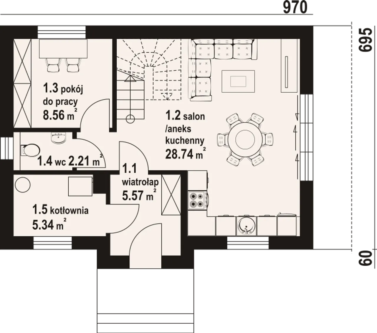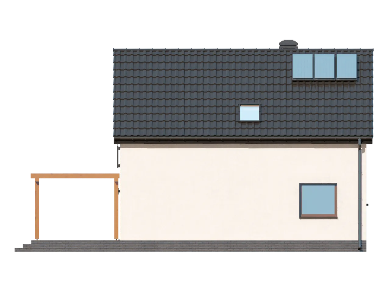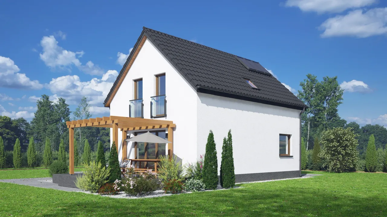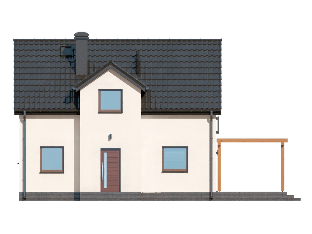 Projekt domu Modrowo bb 70 urzeka swoją nowoczesną estetyką. Jego elewacja zachwyca unikalnym wzornictwem, które przyciąga wzrok. Przestronna i funkcjonalna strefa dzienna zachęca do spędzania czasu w jej wnętrzu, a duże okna wpuszczają mnóstwo naturalnego światła. Projekt dachu harmonijnie współgra z resztą architektury. Taras stanowi doskonałe miejsce do relaksu. Cała konstrukcja odznacza się elegancją i nowoczesnością. Wnętrza domu zaprojektowano z myślą o ułatwieniu codziennego życia, a przemyślany układ pomieszczeń stanowi jego istotny atut. Dom emanuje przytulną i ciepłą atmosferą, co czyni go idealnym miejscem do zamieszkania. To wyjątkowy projekt dla tych, którzy cenią zarówno estetykę, jak i funkcjonalność, i dlatego rozważam jego zakup oraz budowę.