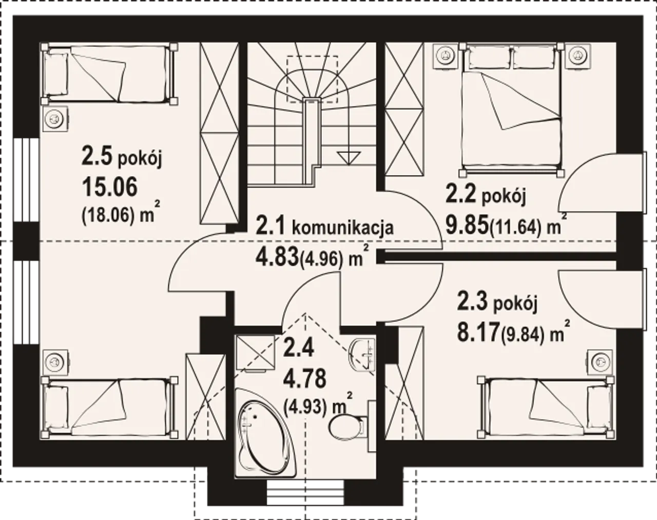 - rzutów kondygnacji użytkowych (parteru i jeśli występują: poddasza, piętra, piwnic)