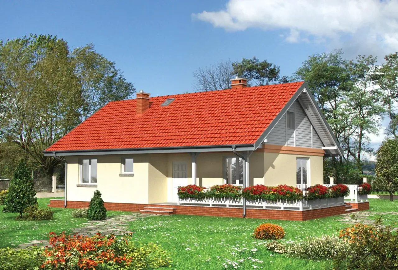 Projekt domu Modrzyk to parterowy dom jednorodzinny o tradycyjnej formie, idealny dla osób szukających sprawdzonego, funkcjonalnego układu na jednym poziomie. Prosta konstrukcja i klasyczny dach dwuspadowy sprzyjają ekonomicznej budowie, a przemyślany podział przestrzeni odpowiada potrzebom współczesnej rodziny.