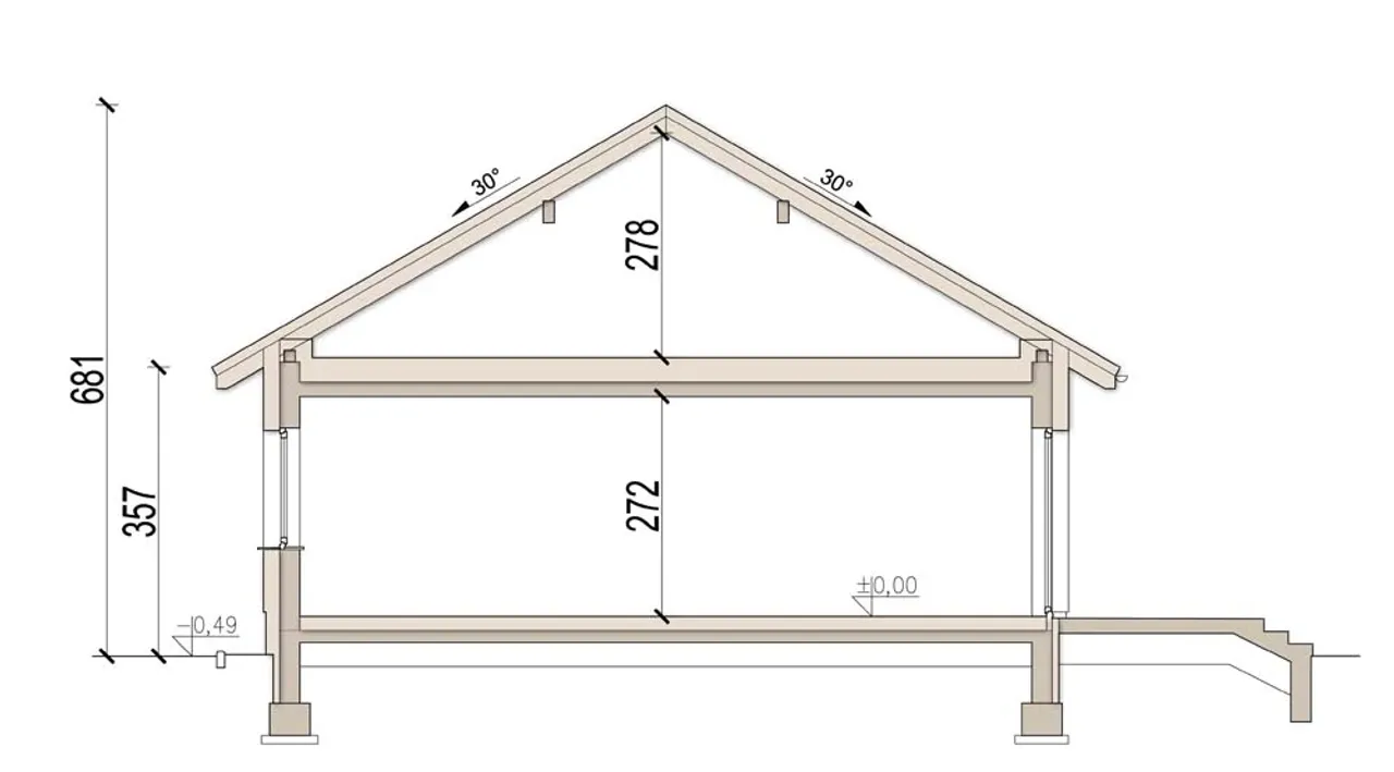 Ten dom całoroczny został zaprojektowany w technologii murowanej, z wykorzystaniem najtrwalszych materiałów dostępnych na rynku. Monolityczny strop oraz dach pokryty dachówką (betonową lub ceramiczną) wpływają na bezpieczeństwo i stabilność budynku. Wielospadowy dach sprzyja odprowadzaniu wody i wygląda niezwykle efektownie, wyróżniając dom na tle innych realizacji.