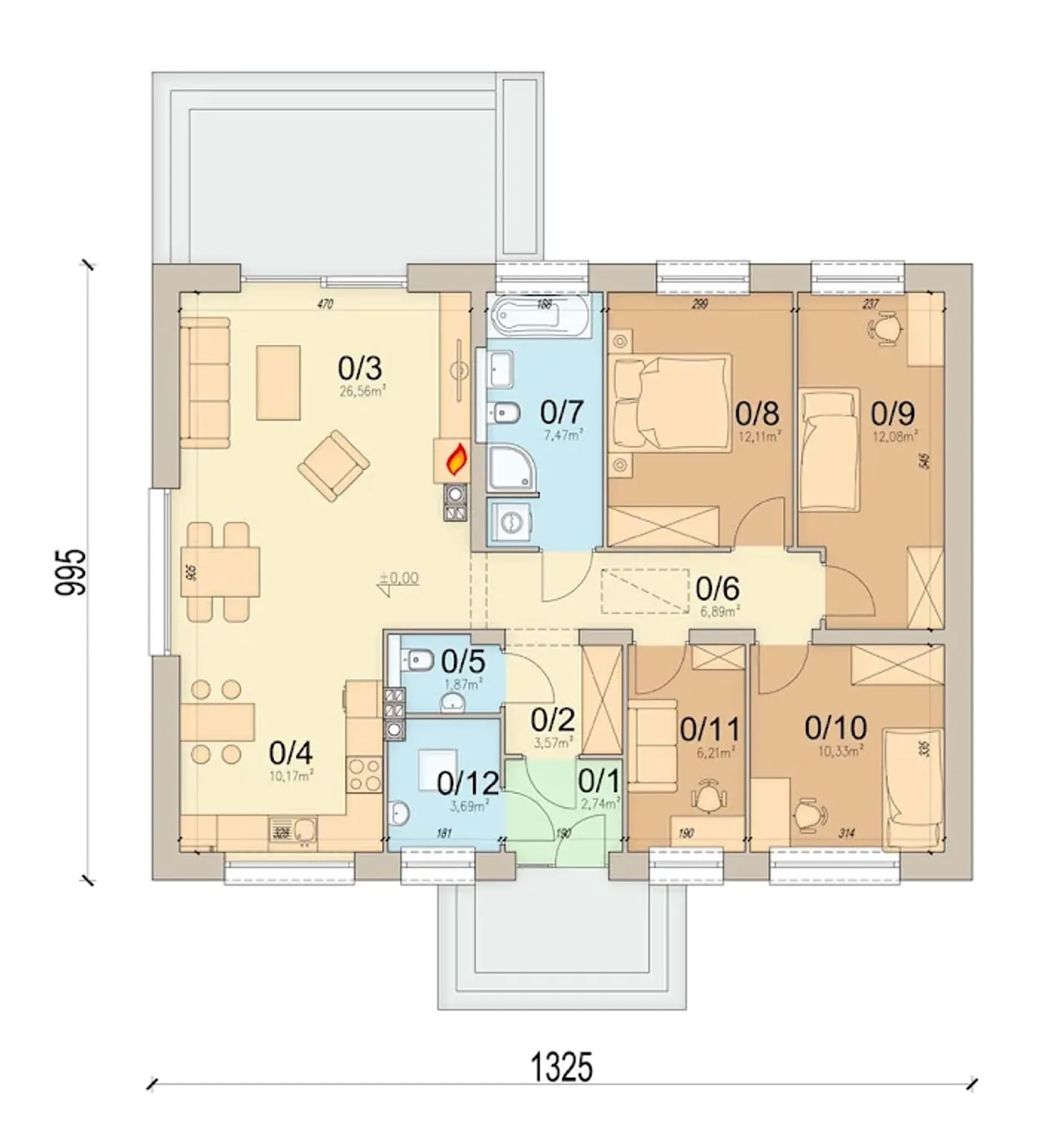 Dom wybudowany na podstawie projektu Mokka 17 4s staje się synonimem wygody oraz wysmakowanego designu. Przemyślane rozmieszczenie pięciu pokoi sprawia, że każdy członek rodziny odnajdzie swoją prywatną przestrzeń. Parterowy układ ogranicza bariery architektoniczne - sprawdzi się zarówno dla młodych rodzin, jak i seniorów. Brak podpiwniczenia upraszcza konstrukcję i obniża koszty budowy, natomiast zastosowana technologia murowana gwarantuje solidność na lata.