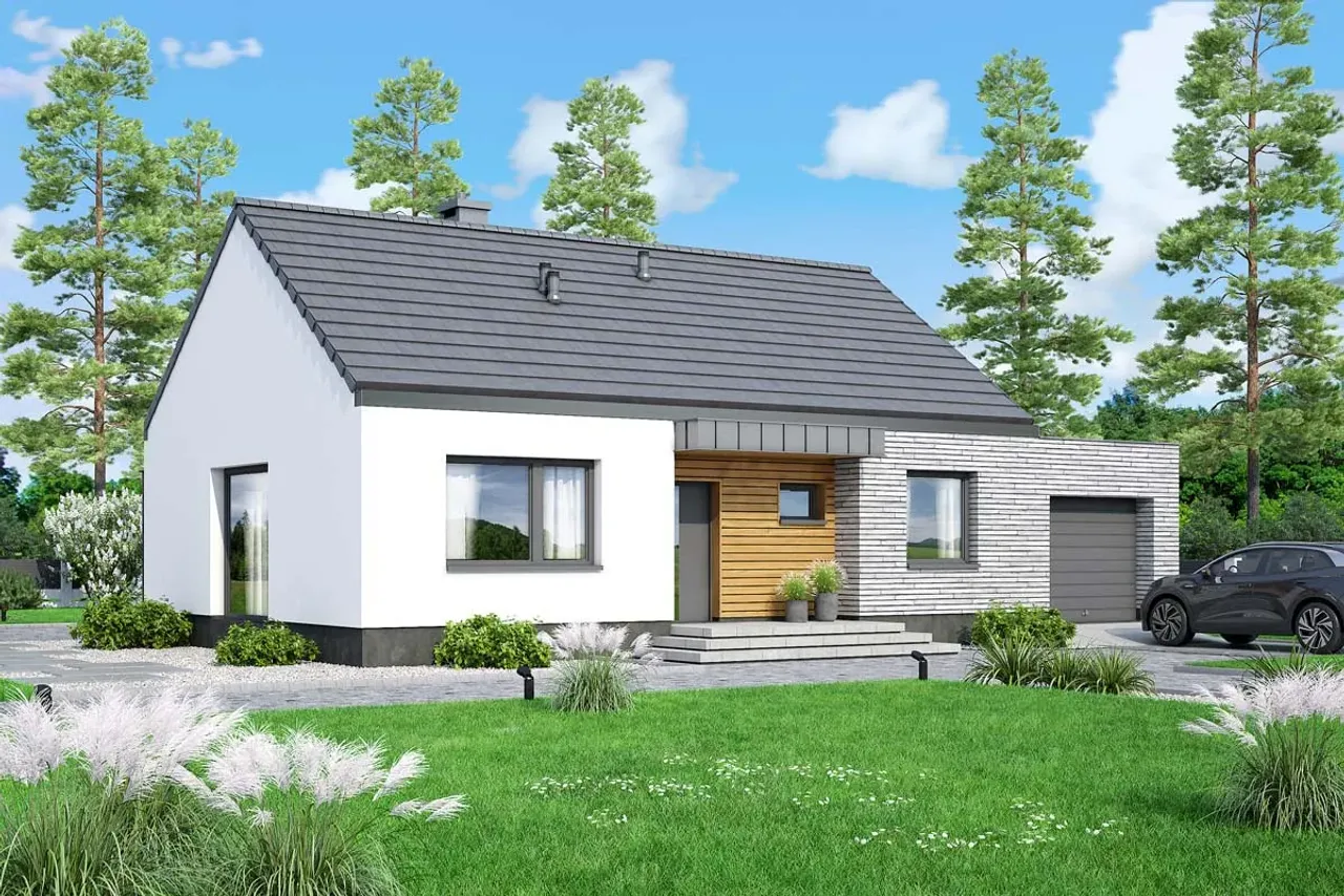 Mokka 20 modern mini to dom parterowy o nowoczesnej, ponadczasowej sylwetce oraz dwuspadowym dachu pod kątem 35°, który nadaje budynkowi dynamiczny, lekki wygląd. Jego przekrój stworzono z pustaków ceramicznych, zapewniając optymalną izolację cieplną i akustyczną. Garaż jednostanowiskowy to praktyczne rozwiązanie dla rodzin z jednym samochodem - możesz wygodnie parkować, bez obaw o deszcz czy śnieg.
