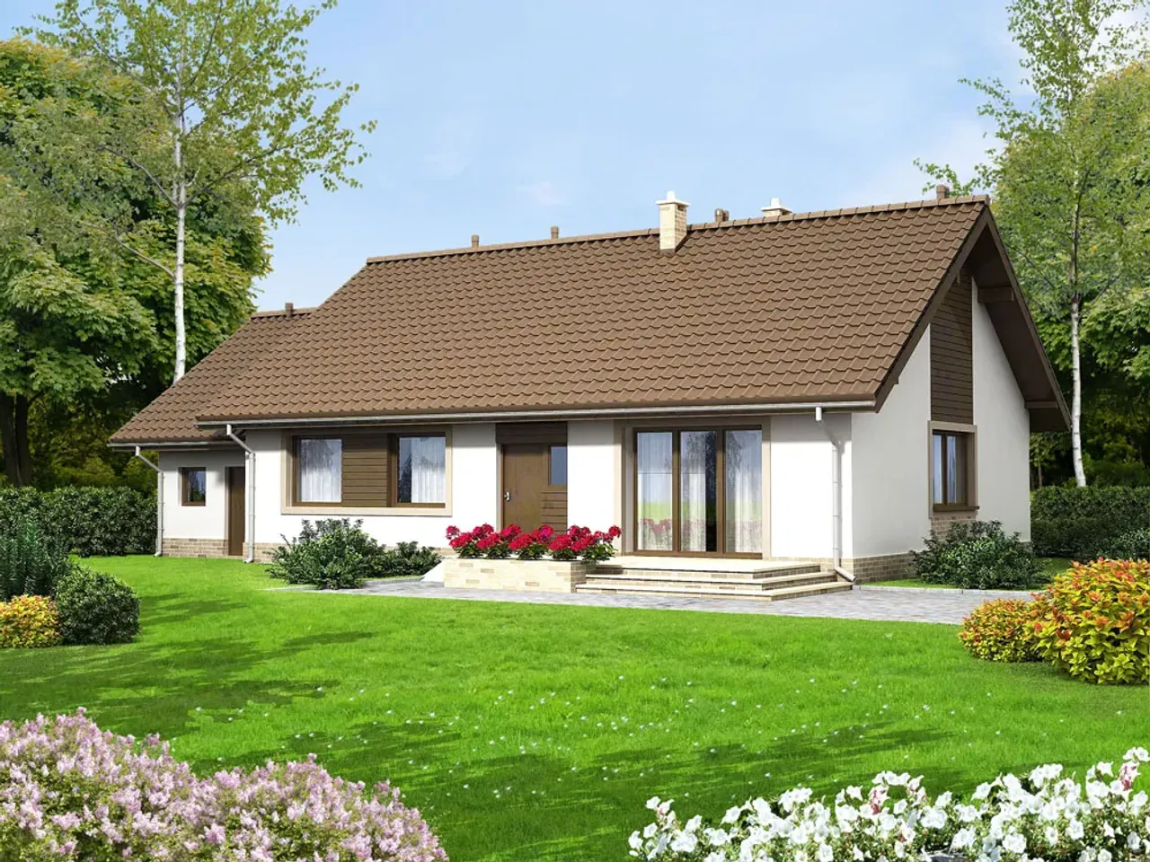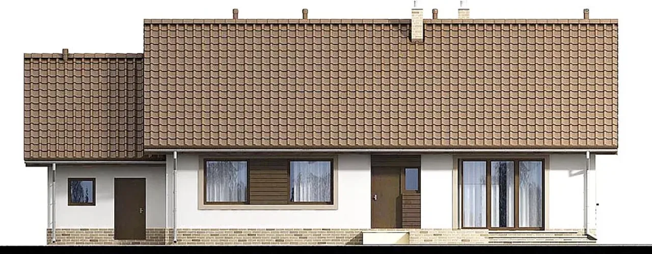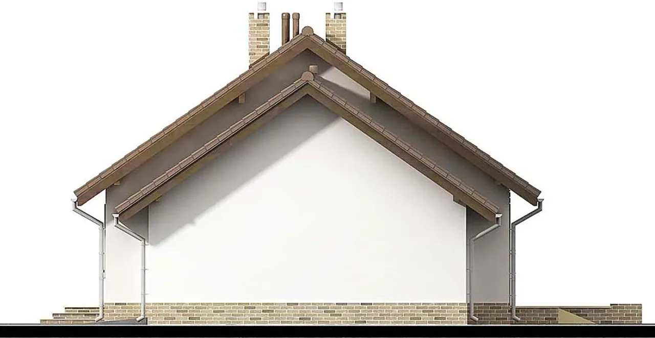 Atutem projektu jest tradycyjny, murowany charakter z wykorzystaniem pustaków ceramicznych. Gęstożebrowy strop oraz drewniana więźba dachowa oferują solidność na lata. Klient może wybrać pomiędzy pokryciem dachu dachówką cementową lub ceramiczną - obie opcje gwarantują trwałość i wysoką estetykę.