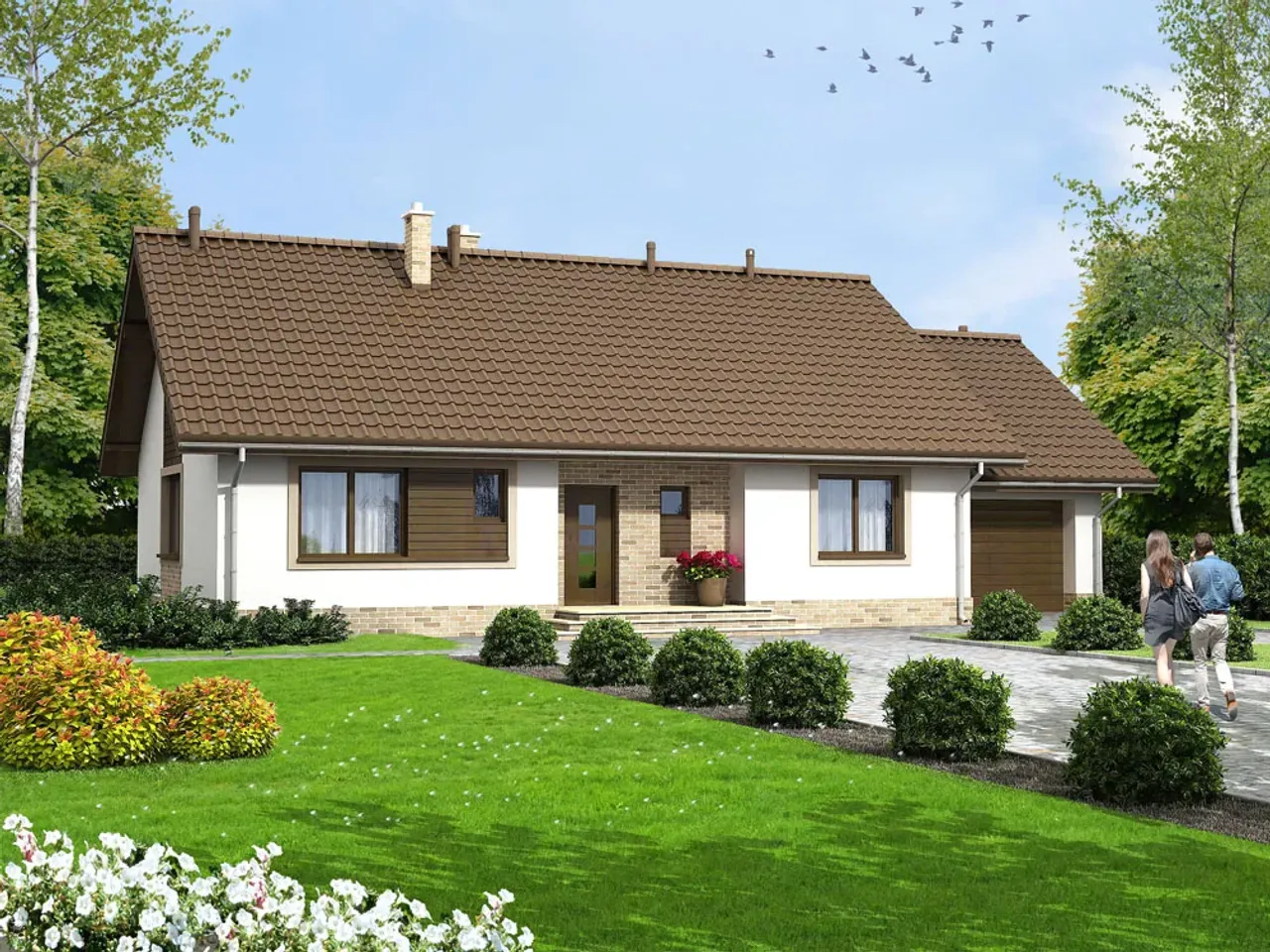 Odkryj uniwersalne rozwiązanie dla rodziny, która ceni solidność i praktyczność. Mokka G1 to projekt jednorodzinnego domu całorocznego, zaprojektowanego w klasycznym stylu, z garażem na jedno stanowisko i niezawodnym kominkiem. Ten dom parterowy harmonijnie łączy wygodę codziennego życia z ponadczasową estetyką.