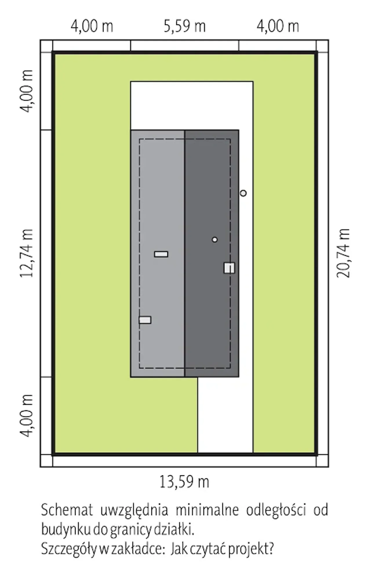 Długość budynku 12.74 m |