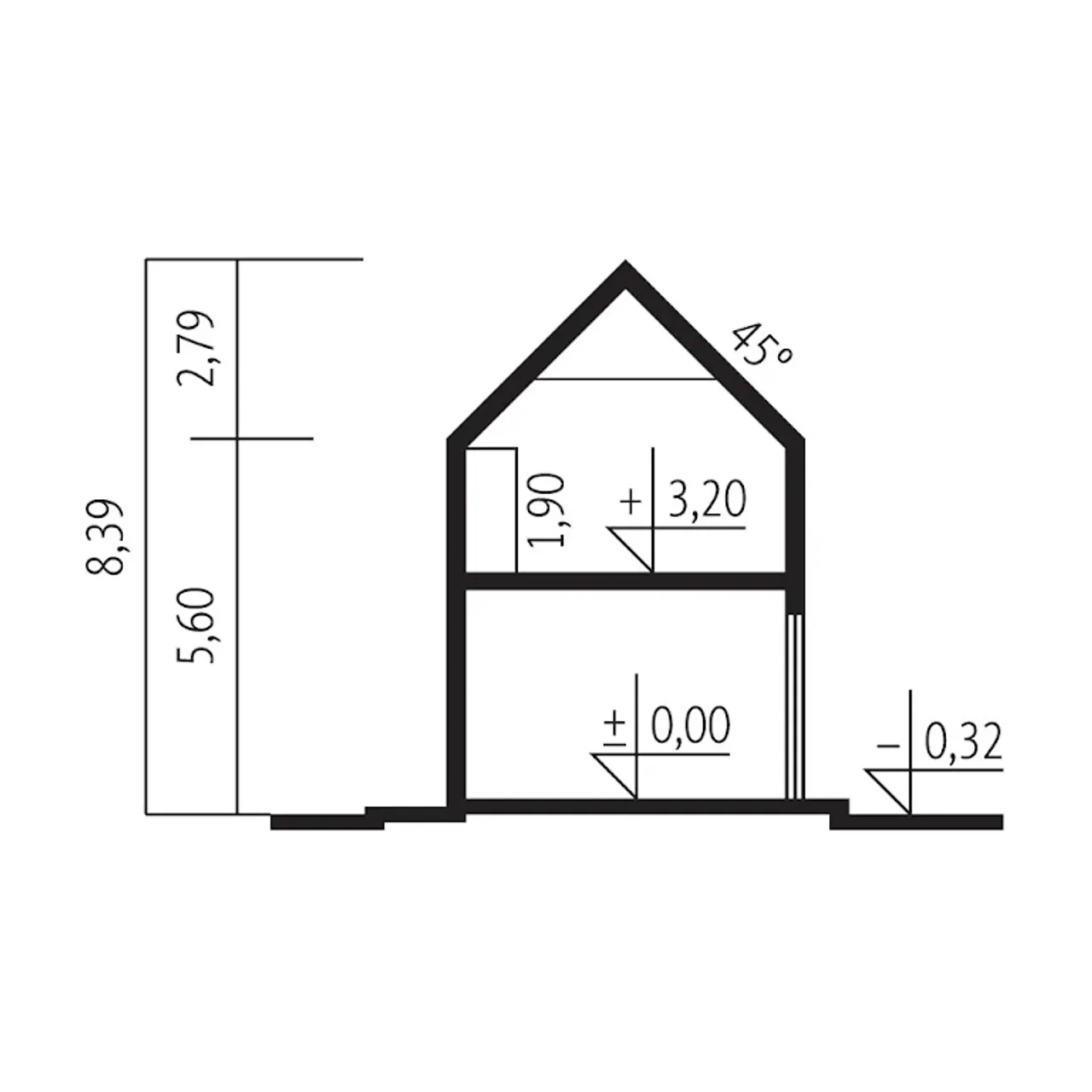 Kąt nachylenia dachu 45 ° |
