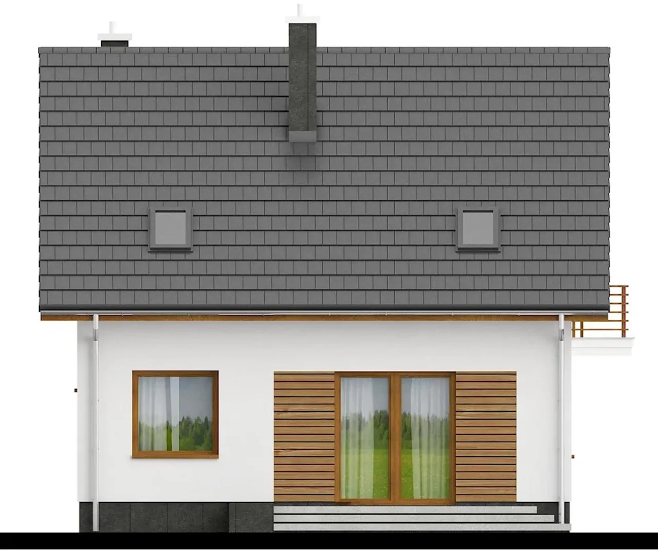 Dom jednorodzinny Monte 3 został zaprojektowany jako nowoczesna, murowana konstrukcja na fundamentach żelbetowych, która nie wymaga podpiwniczenia. Przemyślany rozkład pomieszczeń na parterze i poddaszu sprzyja równowadze pomiędzy strefą wspólną a prywatnością mieszkańców. Ażurowy taras z łatwym dostępem z salonu stanowi naturalne przedłużenie domowej strefy dziennej - idealne miejsce do rodzinnych biesiad czy odpoczynku po pracy.
