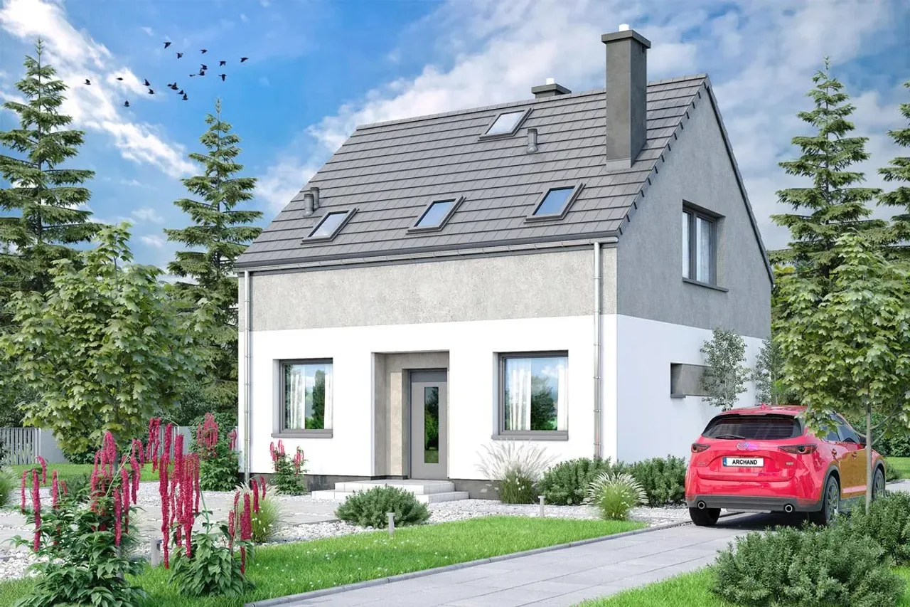 Projekt domu Monte 4 minimo to propozycja, która przyciąga nowoczesną formą i przemyślanymi rozwiązaniami funkcjonalnymi. Rozkład parterowy z poddaszem użytkowym, kompaktowa bryła oraz tradycyjny dach dwuspadowy zaprojektowany z myślą o wygodzie pięcioosobowej rodziny. Ten funkcjonalny dom jednorodzinny doskonale sprawdzi się jako całoroczne miejsce do życia dla osób ceniących praktyczność połączoną z nowoczesnym designem.