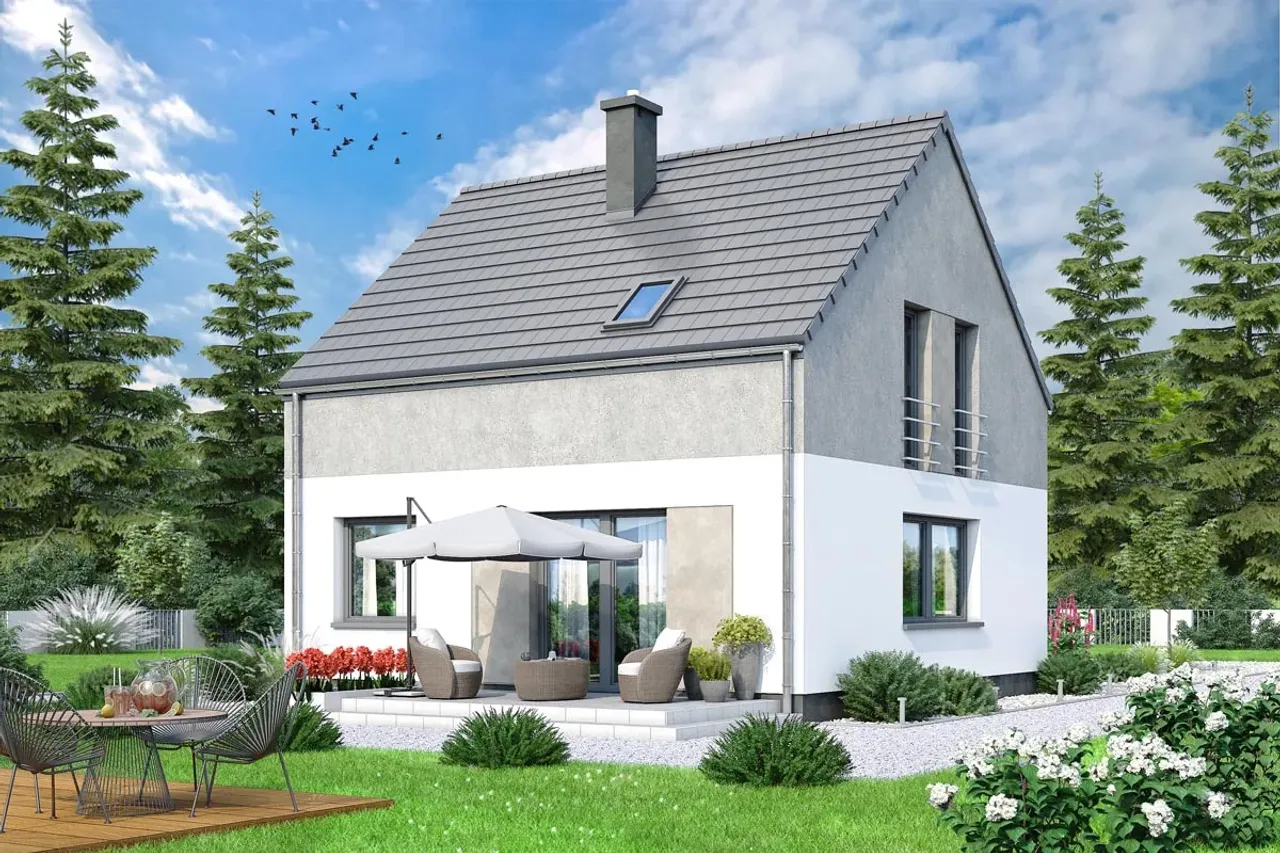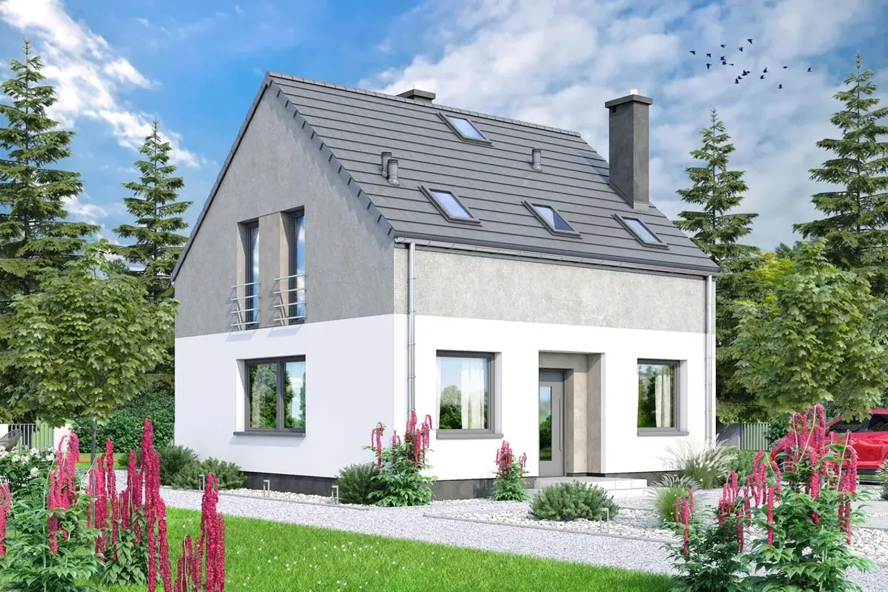 Dom Monte 4 minimo to propozycja dla inwestorów szukających kompromisu między tradycyjną formą a wygodą codziennego użytkowania. Dach o kącie nachylenia 40 stopni pozwala na sprawne odprowadzanie wody oraz efektywne wykorzystanie poddasza jako przestrzeni mieszkalnej lub wypoczynkowej.