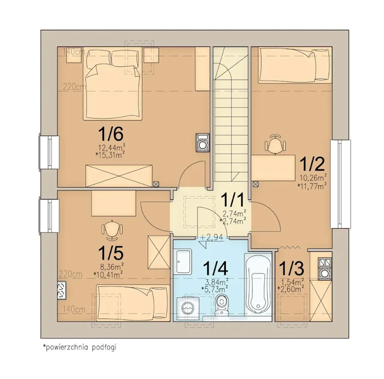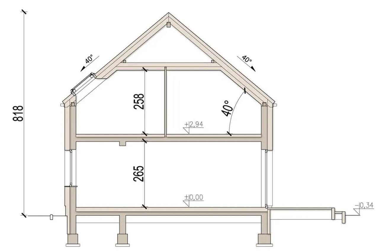 Nowoczesne pokrycie dachowe - dachówka betonowa lub ceramiczna - zapewnia wytrzymałość, a drewniana konstrukcja więźby to nawiązanie do najlepszych budowlanych tradycji. Parterowy układ z poddaszem adaptowanym przekłada się na prostą i ekonomiczną budowę oraz większą swobodę w kształtowaniu wnętrza.