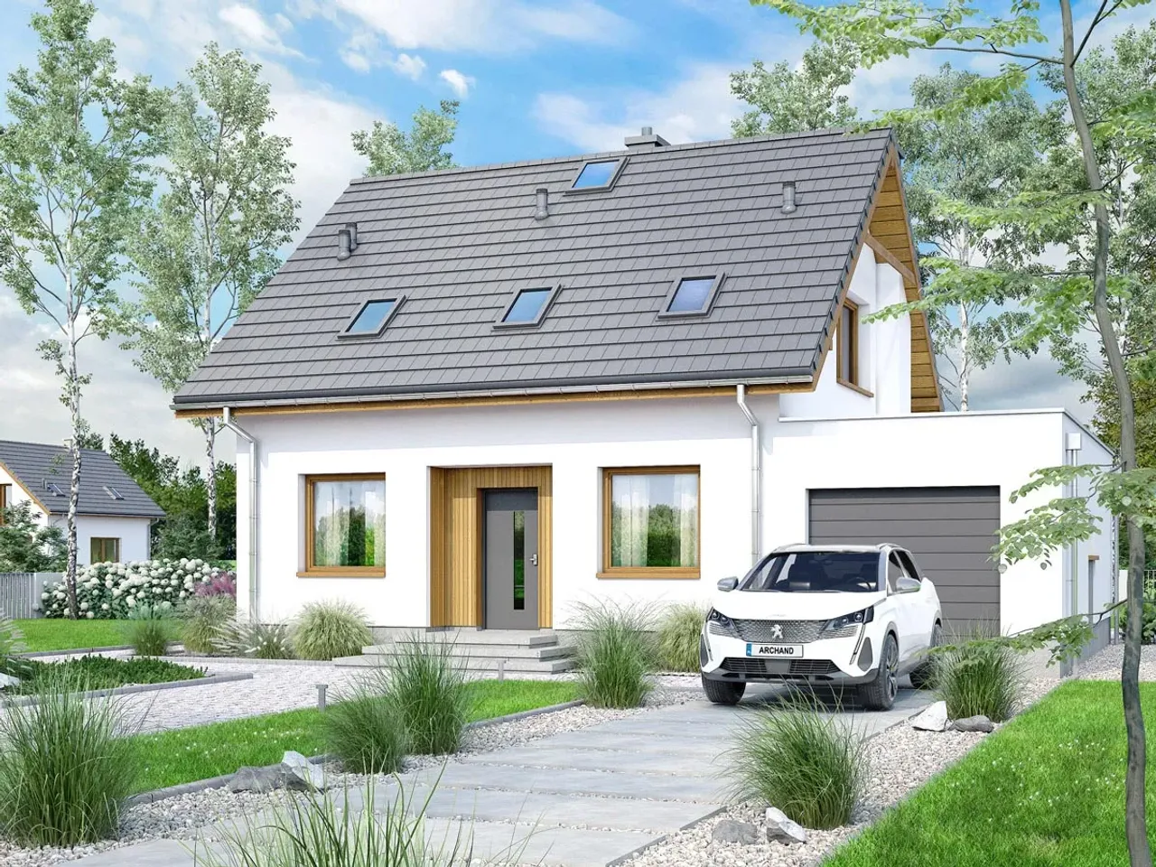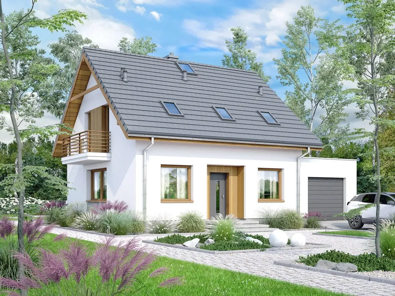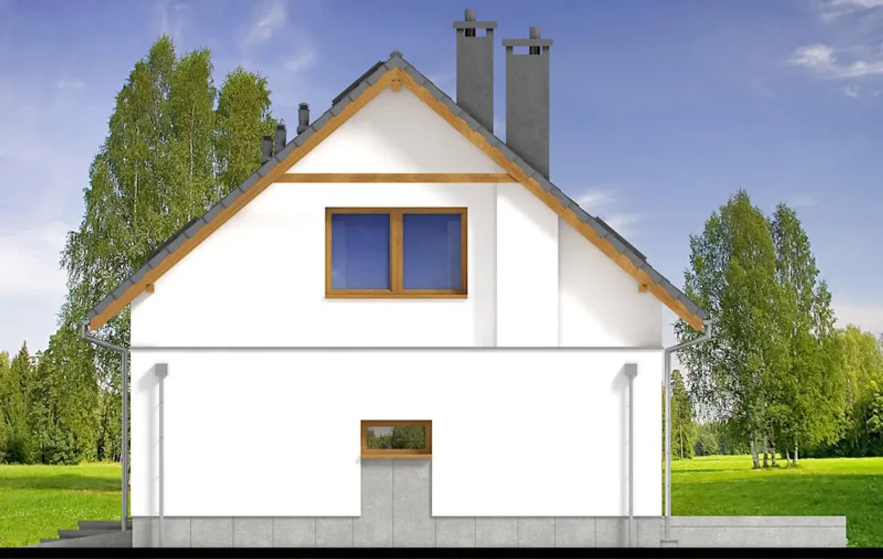 Projekt Monte 5 to dom, który wyróżnia się energooszczędnym, nowoczesnym podejściem do organizacji przestrzeni. Parterowa konstrukcja z funkcjonalnym poddaszem doskonale sprawdza się na działkach z wjazdem od południa lub wschodu, podkreślając równoległe ustawienie kalenicy względem drogi. Dach dwuspadowy o znacznym kącie nachylenia (40°) nadaje budynkowi atrakcyjny wygląd, a drewniana więźba dachowa wraz z trwałym pokryciem z dachówki ceramicznej lub betonowej sprawiają, że budynek służy przez długie lata.