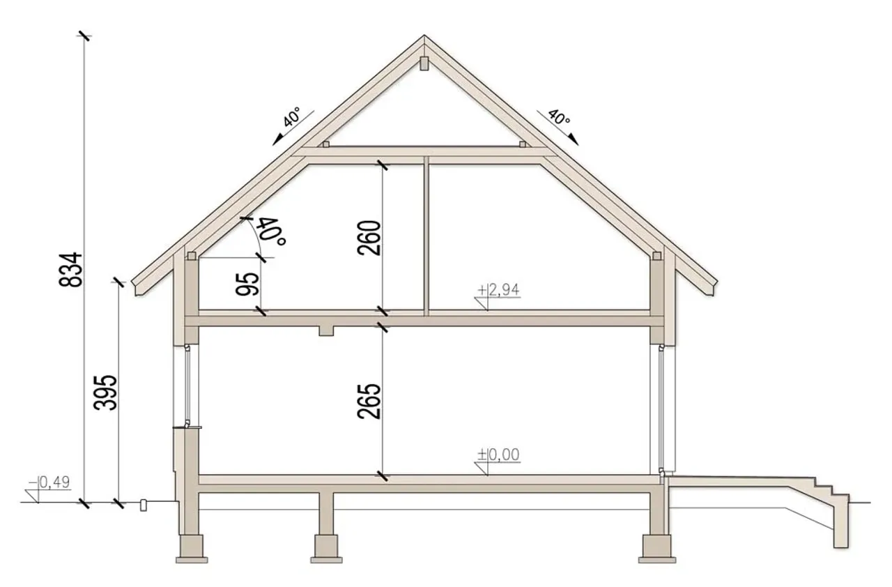 Dom powstaje w technologii tradycyjnej, z wykorzystaniem pustaków ceramicznych i żelbetowej płyty fundamentowej. Stabilny, monolityczny strop i lekka, drewniana więźba dachowa zapewniają bezpieczeństwo, a pokrycie z dachówki betonowej lub ceramicznej - chroni przed kaprysami pogody.