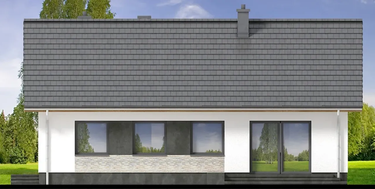Projekt domu Morela to esencja funkcjonalności w nowoczesnym wydaniu. Czysta, elegancka bryła na planie prostokąta, zwieńczona dwuspadowym dachem o kącie nachylenia 35°, doskonale komponuje się z każdym otoczeniem. Wnętrze składa się z czterech oddzielnych pokoi, które można zaaranżować na sypialnie, gabinet, czy pokój hobby.