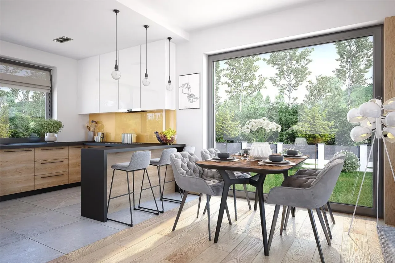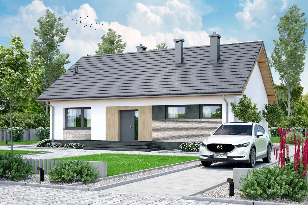 Zrealizuj inwestycję w nowoczesny projekt domu jednorodzinnego Morela, łączący elegancki styl i solidną technologię wykonania. To idealny wybór dla rodzin, które cenią przestrzeń, wygodę użytkowania oraz trwałą, efektowną architekturę. Przekonaj się, jak harmonijnie modernistyczna bryła domu parterowego z dwuspadowym dachem wpisuje się w najnowsze trendy budownictwa.
