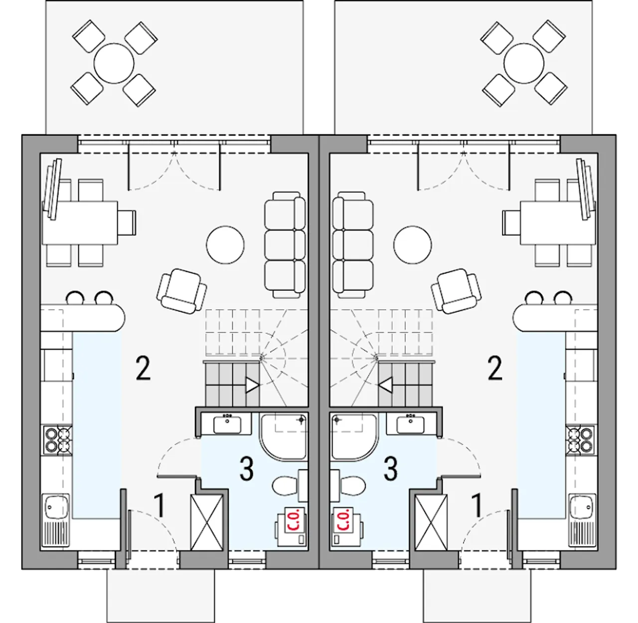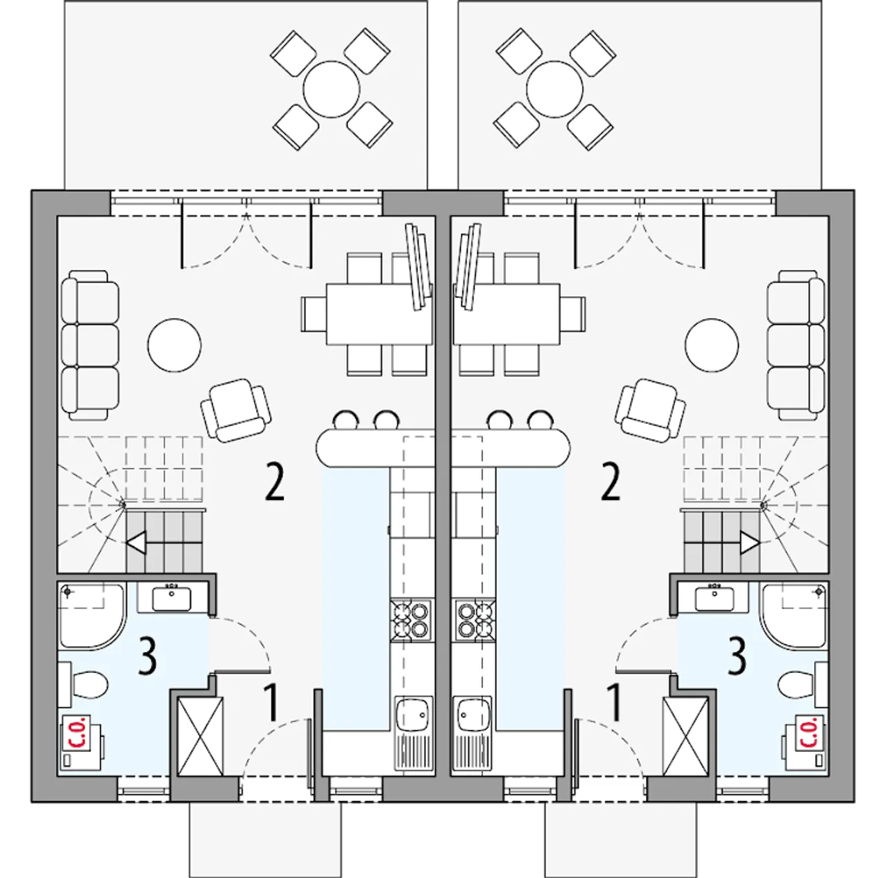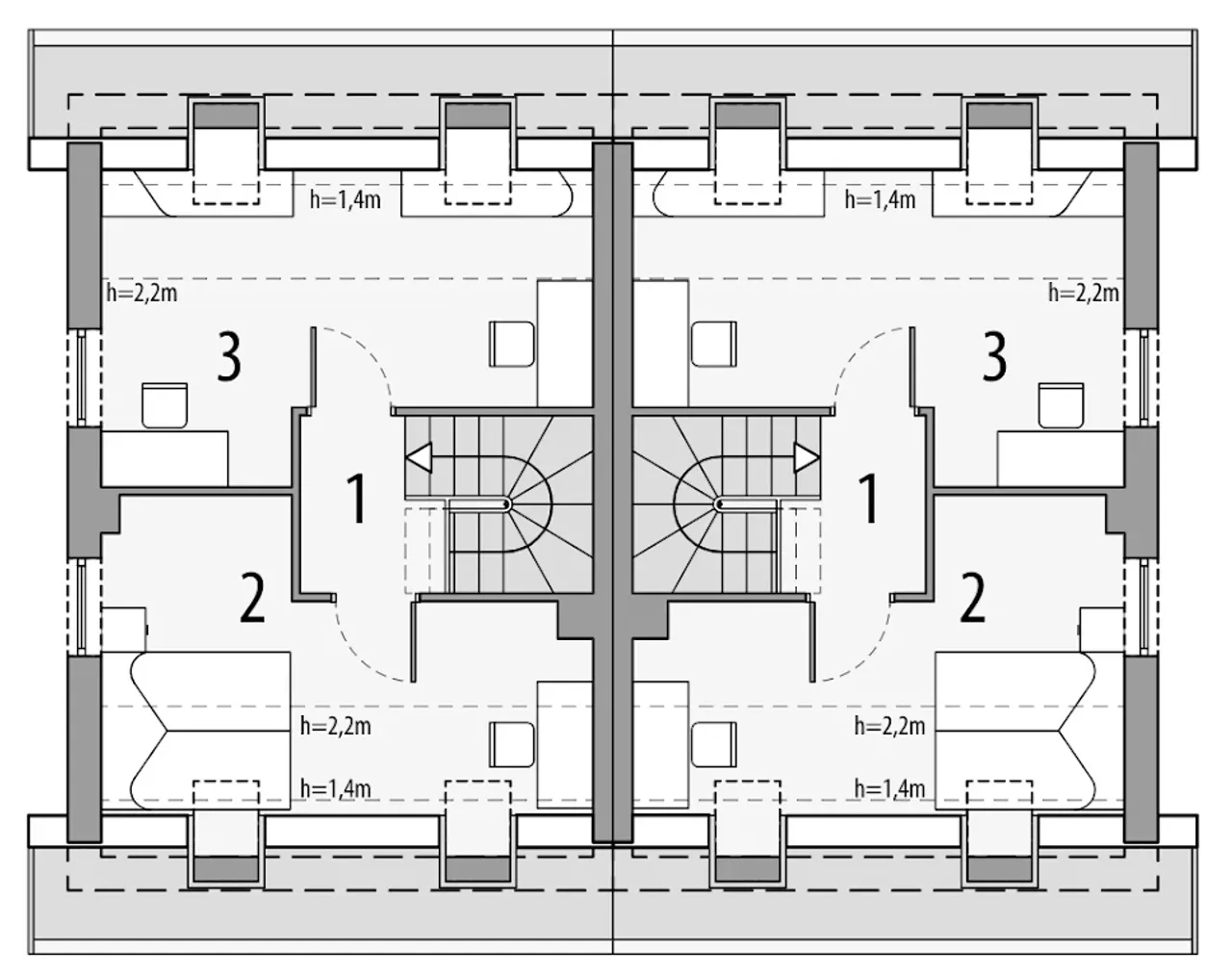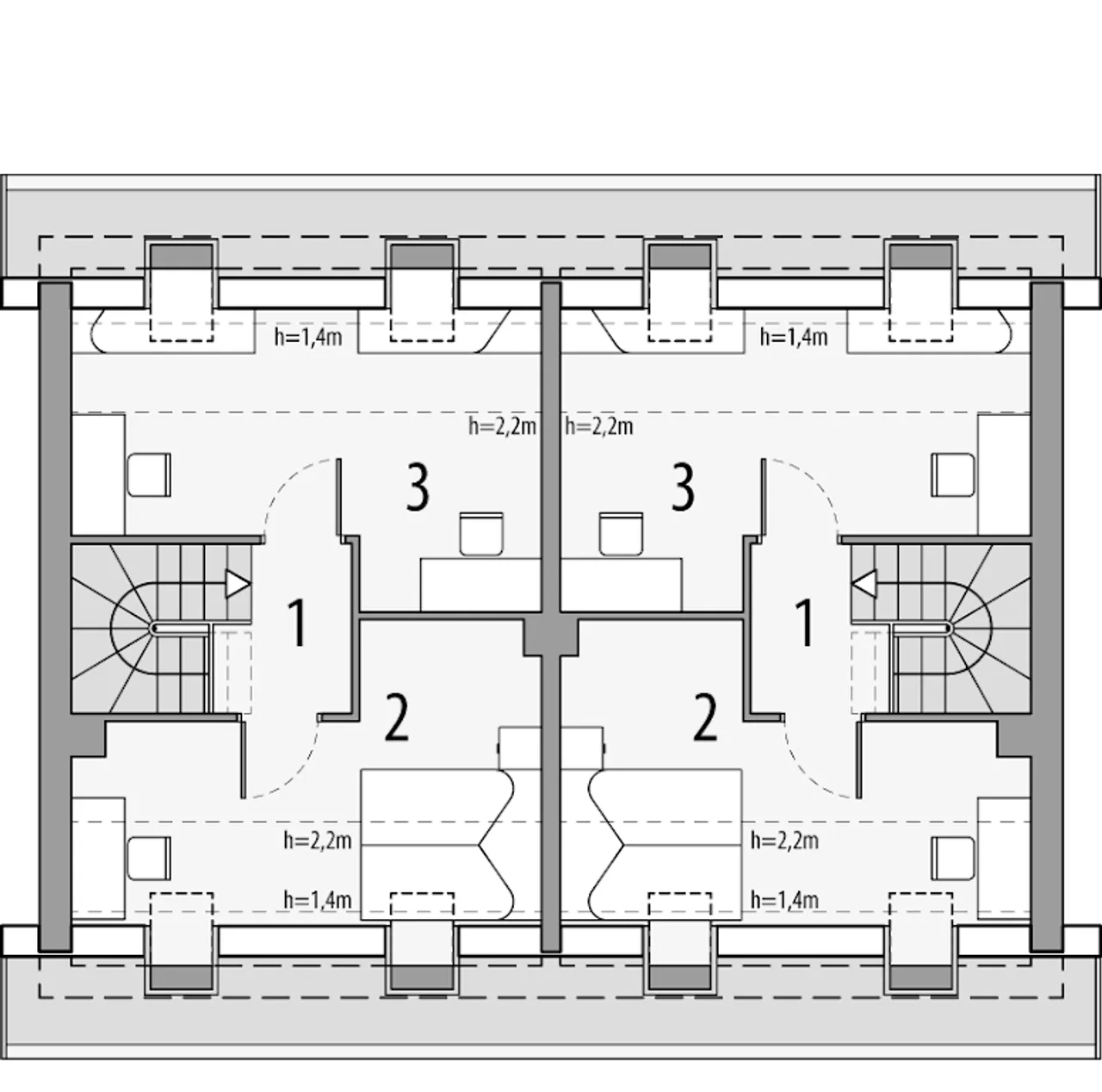 Wypełnij formularz i otrzymaj rysunki w pdf z dokładnymi wymiarami budynku i pomieszczeń (długość, szerokość, wysokość) dla projektu Morski 3 - dwulokalowy L.LL