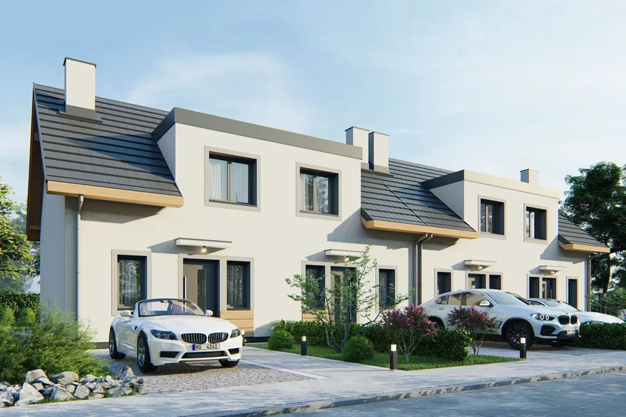 Projekt domu Morski 4 - bliźniak to prawdziwa perła wśród domów dla rodziny ceniącej sobie elegancję i funkcjonalność, a równocześnie poszukującej uczucia przestronności i światła. Harmonijne połączenie nowoczesności z klasycznymi elementami, jak duże przeszklenia współgrające z wygodnym, przemyślanym układem wnętrz to idealne rozwiązanie dla tych, którzy pragną luksusu na co dzień. Ogromne wrażenie robi otwarta przestrzeń dzienna, która jest zarówno sercem domu, jak i naturalnym centrum rodzinnych spotkań. Morski 4 zapewnia intymność i komfort, jednocześnie inspirując do spędzania czasu wspólnie. Jest to dom, w którym każdy szczegół składa się na ciepło rodzinnej przystani.