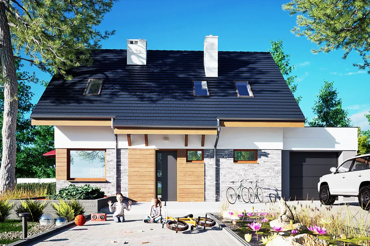 Kupując projekt w technologii murowanej powinieneś budować dom murowany. Zupełna zmiana technologii na szkieletową wymaga przeprojektowania całego budynku ( zmieniają się obciążenia, fundamenty, konstrukcja dachu). Wydamy zgodę na takie przeprojektowanie jednak wiążę się to z dużymi kosztami. Istnieją firmy wykonawcze, które podejmują się zmiany technologii budowy bezpłatnie przy skorzystaniu z ich usług wykonawczych. Zdarza się, że pracownia architektoniczna przygotowuje warianty konkretnego projektu przewidując także inne technologie. Prosimy o sprawdzenie czy istnieje poszukiwana wersja projektu, w zakładce - warianty projektu.