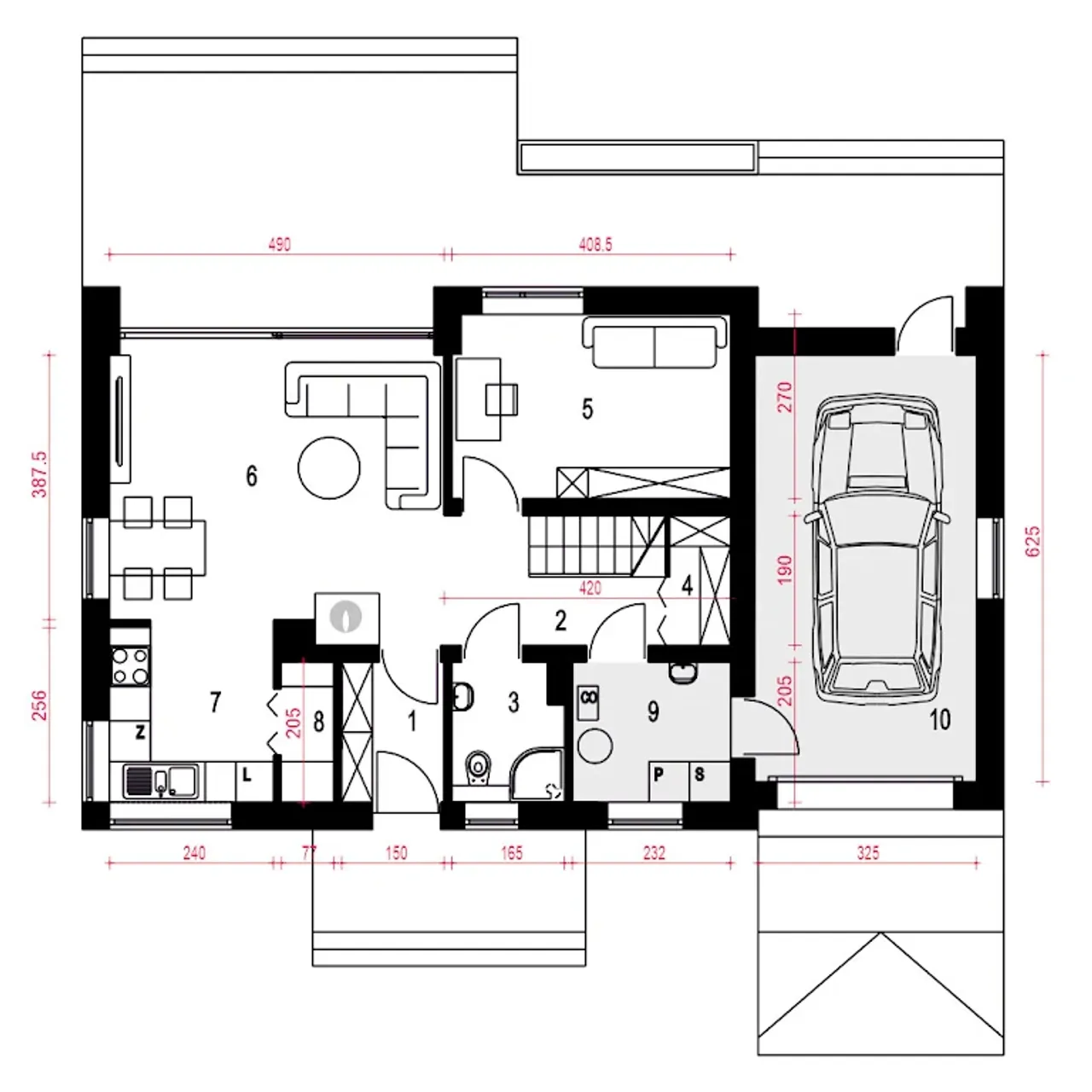 Wypełnij formularz i otrzymaj rysunki w pdf z dokładnymi wymiarami budynku i pomieszczeń (długość, szerokość, wysokość) dla projektu Morwa z garażem 1-st. A