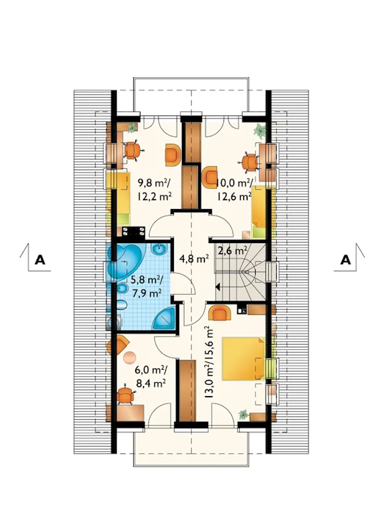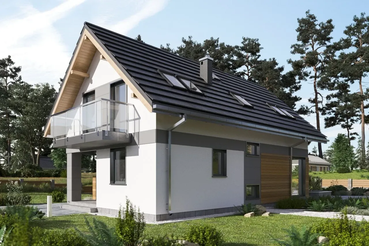 - elewacje - pokazują dokładny wygląd domu od frontu, z tyłu i z boków