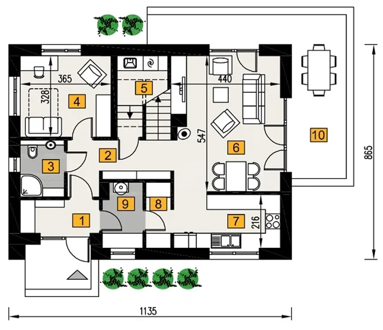 Wypełnij formularz i otrzymaj rysunki w pdf z dokładnymi wymiarami budynku i pomieszczeń (długość, szerokość, wysokość) dla projektu Nasz faworyt 1 - A108+AR1