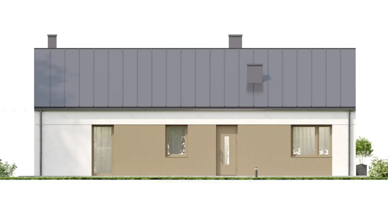 - Elewacje: wykończone tynkiem strukturalnym.