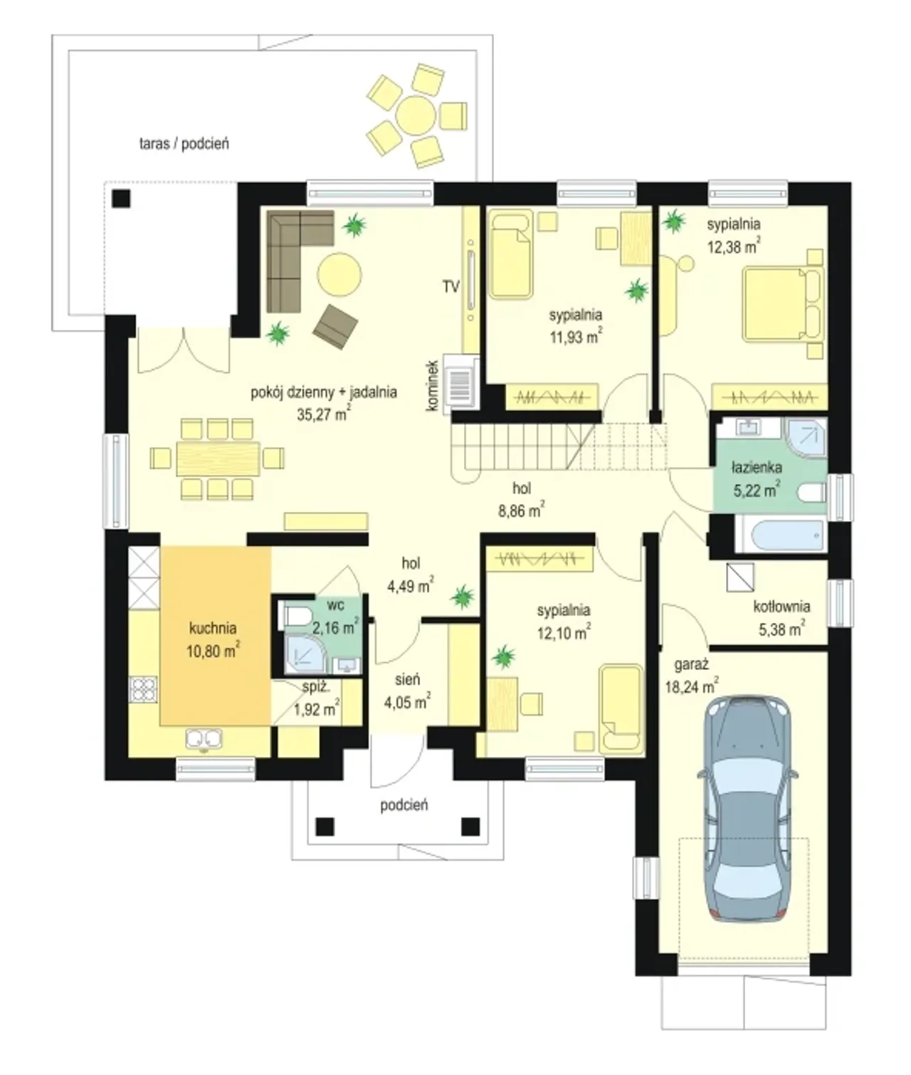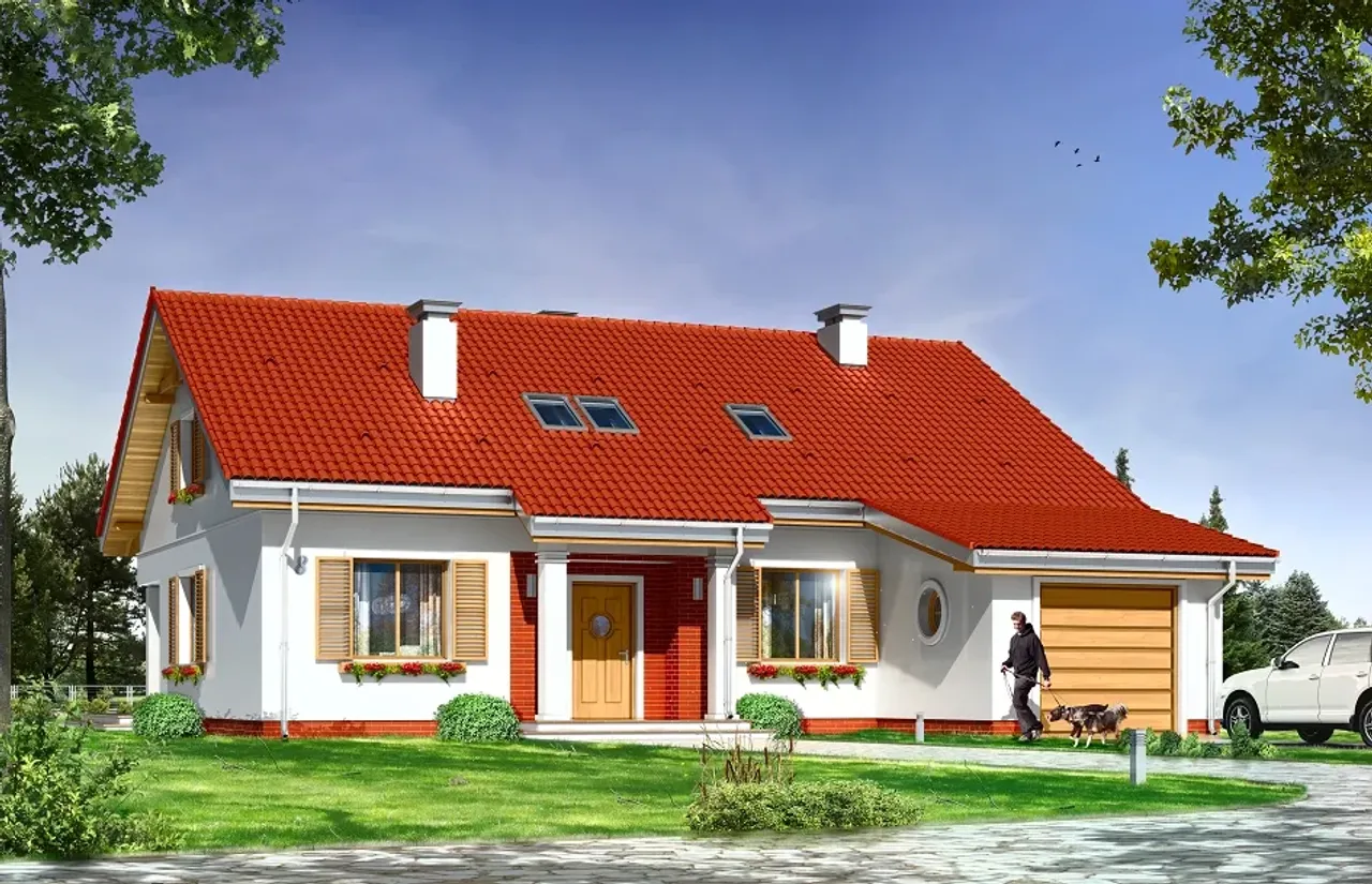 Kupując projekt w technologii murowanej powinieneś budować dom murowany. Zupełna zmiana technologii na szkieletową wymaga przeprojektowania całego budynku ( zmieniają się obciążenia, fundamenty, konstrukcja dachu). Wydamy zgodę na takie przeprojektowanie jednak wiążę się to z dużymi kosztami. Istnieją firmy wykonawcze, które podejmują się zmiany technologii budowy bezpłatnie przy skorzystaniu z ich usług wykonawczych. Zdarza się, że pracownia architektoniczna przygotowuje warianty konkretnego projektu przewidując także inne technologie. Prosimy o sprawdzenie czy istnieje poszukiwana wersja projektu, w zakładce - warianty projektu.