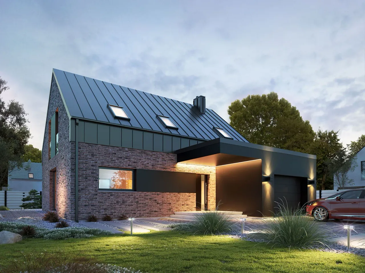 Odkryj wyjątkowy projekt domu Nemini 2 - nowoczesny budynek jednorodzinny w kształcie litery L, który harmonijnie łączy funkcjonalność z eleganckim stylem. Funkcjonalny układ parteru, poddasze do adaptacji oraz przestronny garaż sprawiają, że ten dom sprawdzi się doskonale dla rodzin ceniących wygodę, prywatność i praktyczne rozwiązania na co dzień.