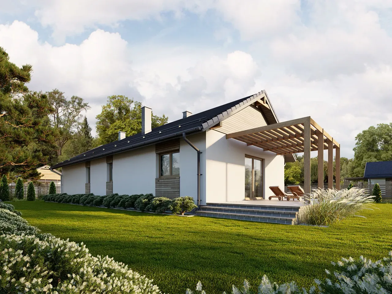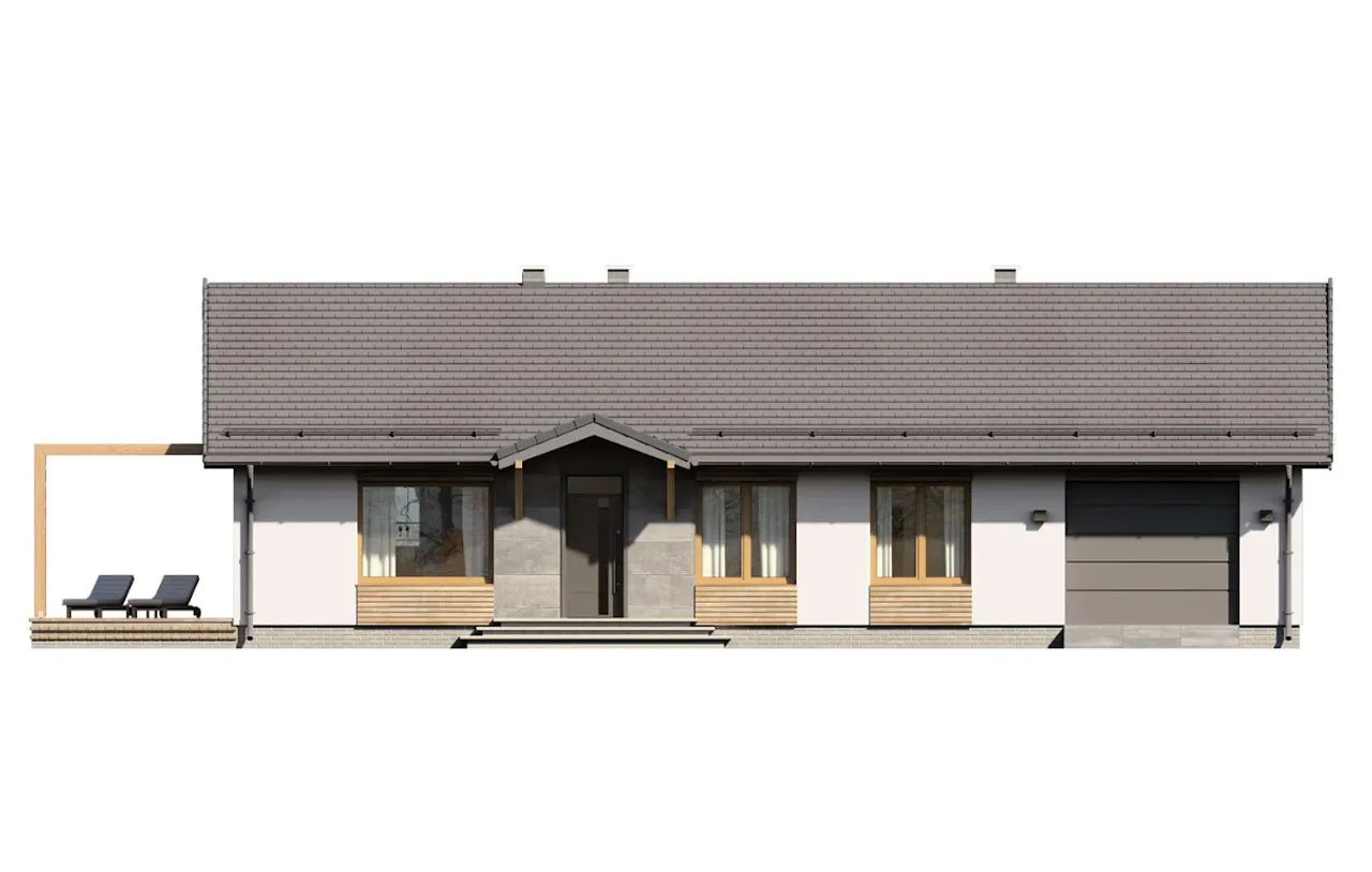 Odkryj nowoczesny projekt domu jednorodzinnego Neo, zaplanowany z myślą o wygodnym życiu rodziny. Funkcjonalna parterowa bryła wpisuje się w aktualne trendy, a atrakcyjny taras zachęca do spędzania czasu na świeżym powietrzu. Projekt oferuje doskonałą równowagę pomiędzy stylowym designem a praktycznymi rozwiązaniami konstrukcyjnymi.