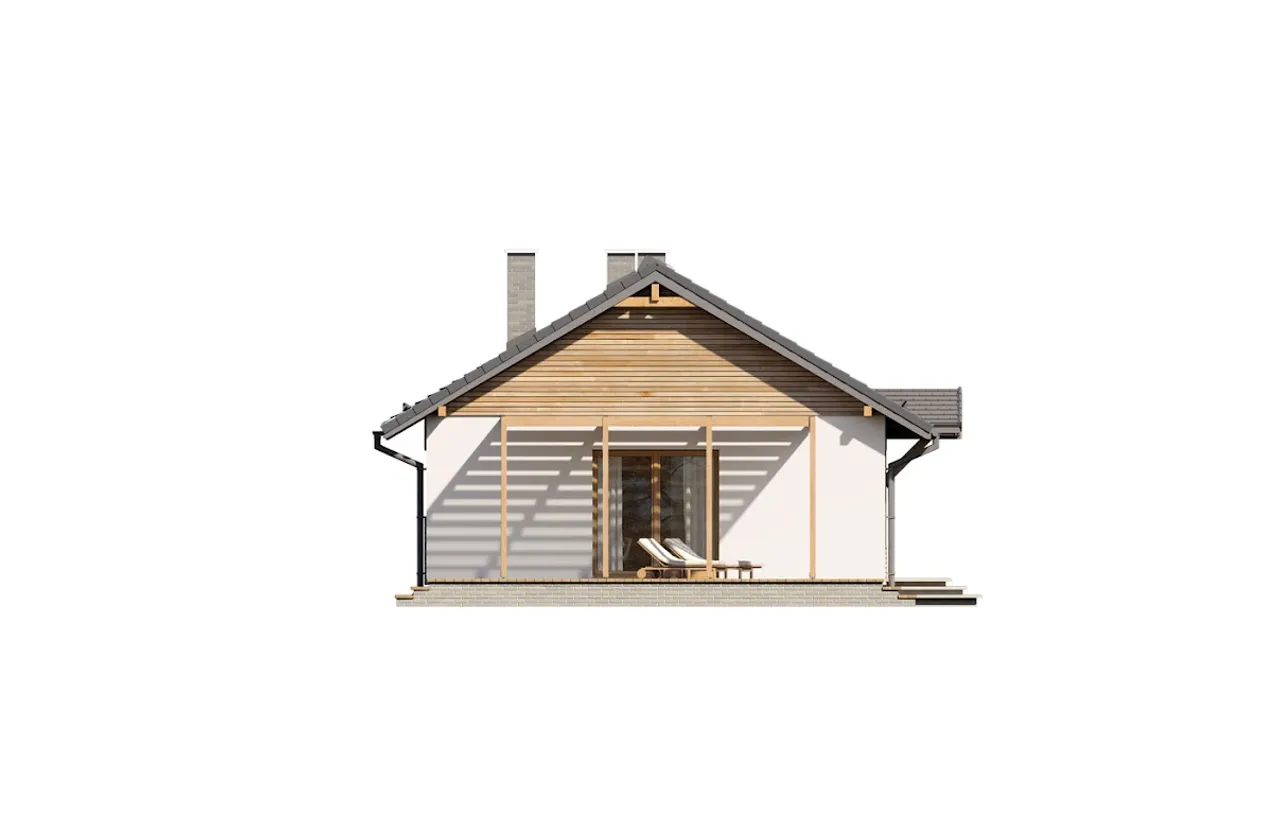 Dom wznoszony jest w ekonomicznej technologii murowanej - ściany zewnętrzne powstają z ciepłego pustaka ceramicznego, docieplonego styropianem. Dzięki temu wnętrze jest przyjazne i tanie w eksploatacji, bez względu na rodzaj ogrzewania: gaz, pellet lub - w opcji - wydajna pompa ciepła. Zamontowany kominek staje się nie tylko elementem dekoracyjnym, ale i dodatkowym źródłem ciepła w chłodne dni.